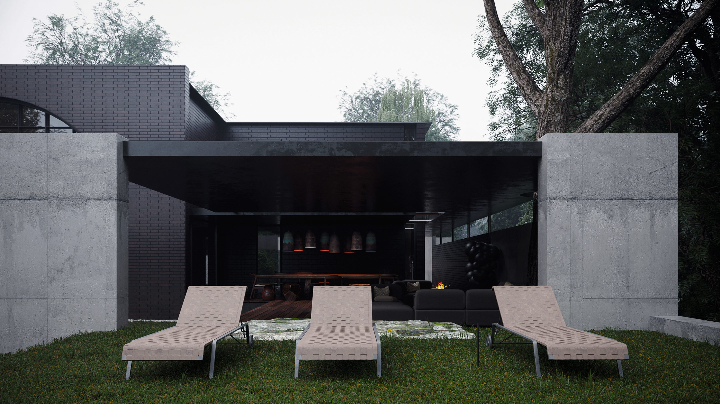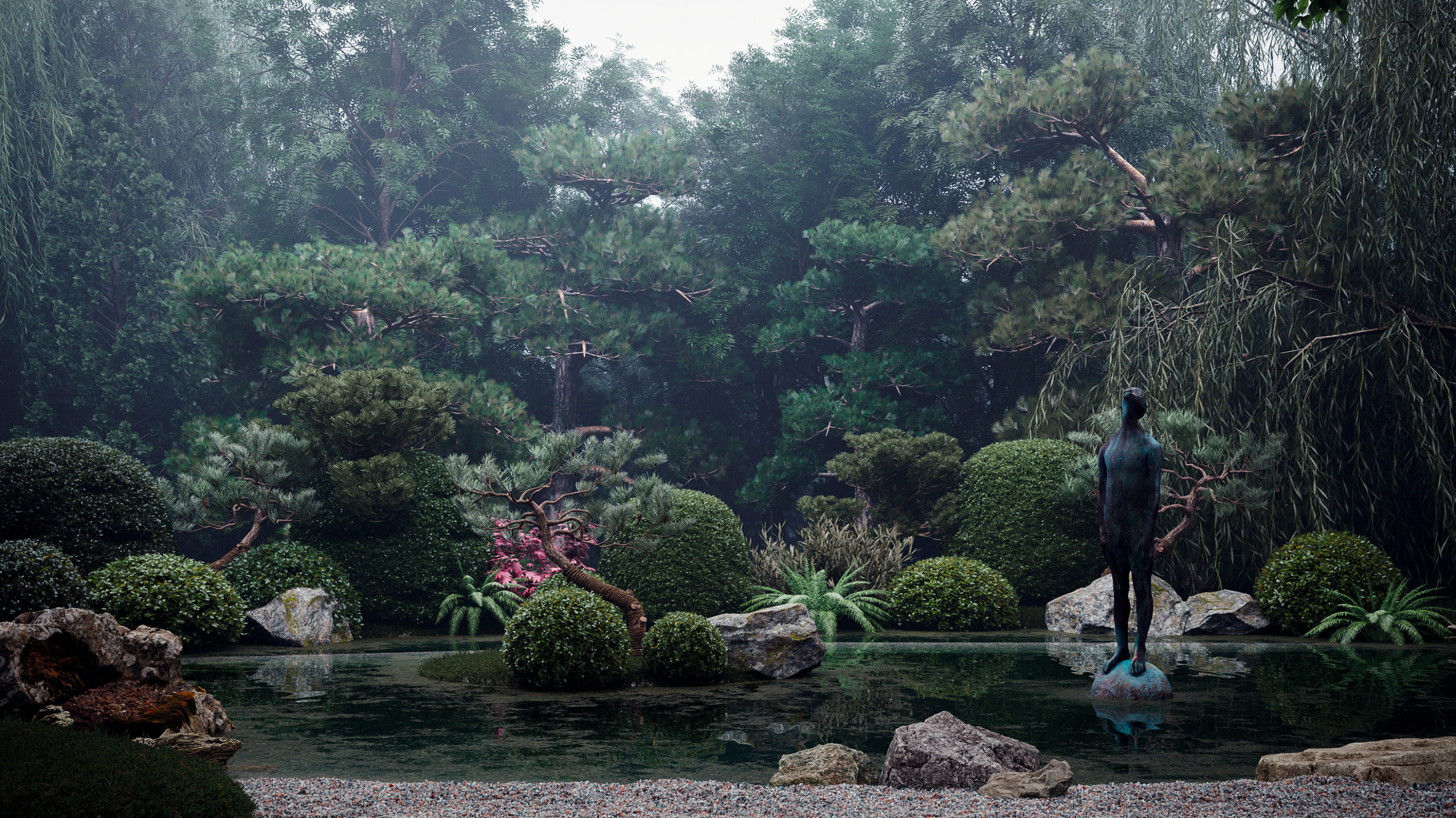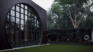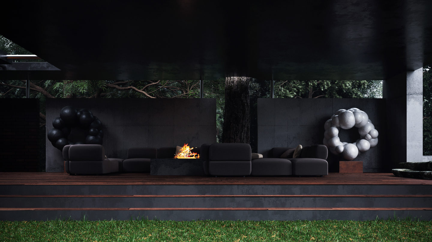 Al presentar su último trabajo, el estudio escribe: “Cada noche, las esculturas cobran vida, los árboles se despiertan del día de la siesta, los jardines de piedra comienzan a moverse y comienza la historia”. Este lirismo conceptual es evidente en las cualidades formales del hogar, ubicadas especulativamente. en los suburbios de Kiev: pensé que no estaría fuera de lugar en Japón, cuya tradición de diseño han aprovechado los arquitectos en su prestación de la propiedad. Titulado ‘Oko House’: oko que se traduce del ucraniano al significado de ojo: el nombre se inspira en un ojo que todo lo ve. El edificio de dos niveles se levanta con vistas a un jardín verde de árboles y bonsáis establecidos, jardines de rocas, esculturas y fuentes de agua. Sergey Makhno ha destacado nuevamente en la creación de un espacio atmosférico, de otro mundo, con áreas parcialmente pavimentadas que ofrecen vistas de orbes y estatuas flotantes de plata y patios techados con pozos de fuego.