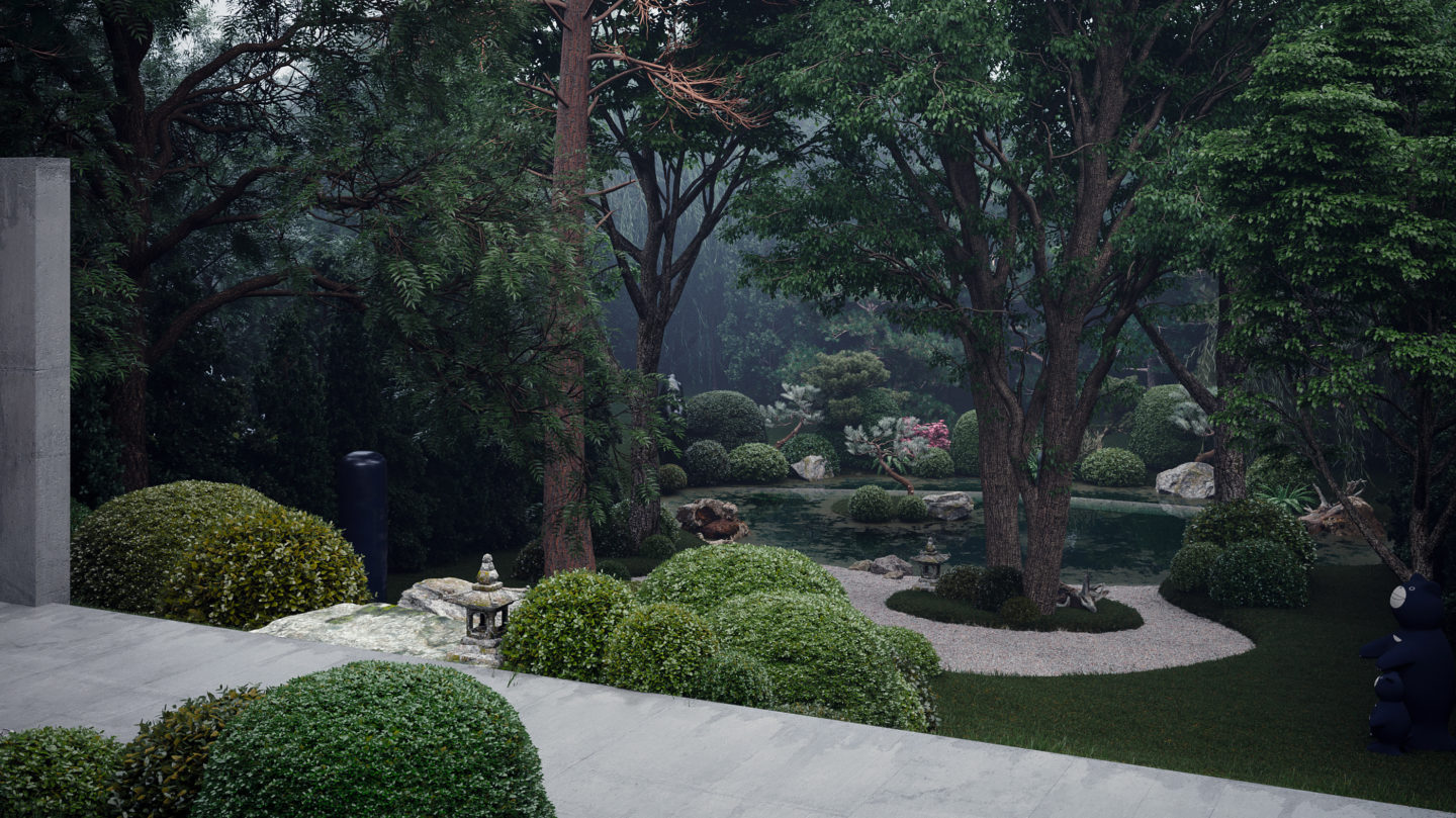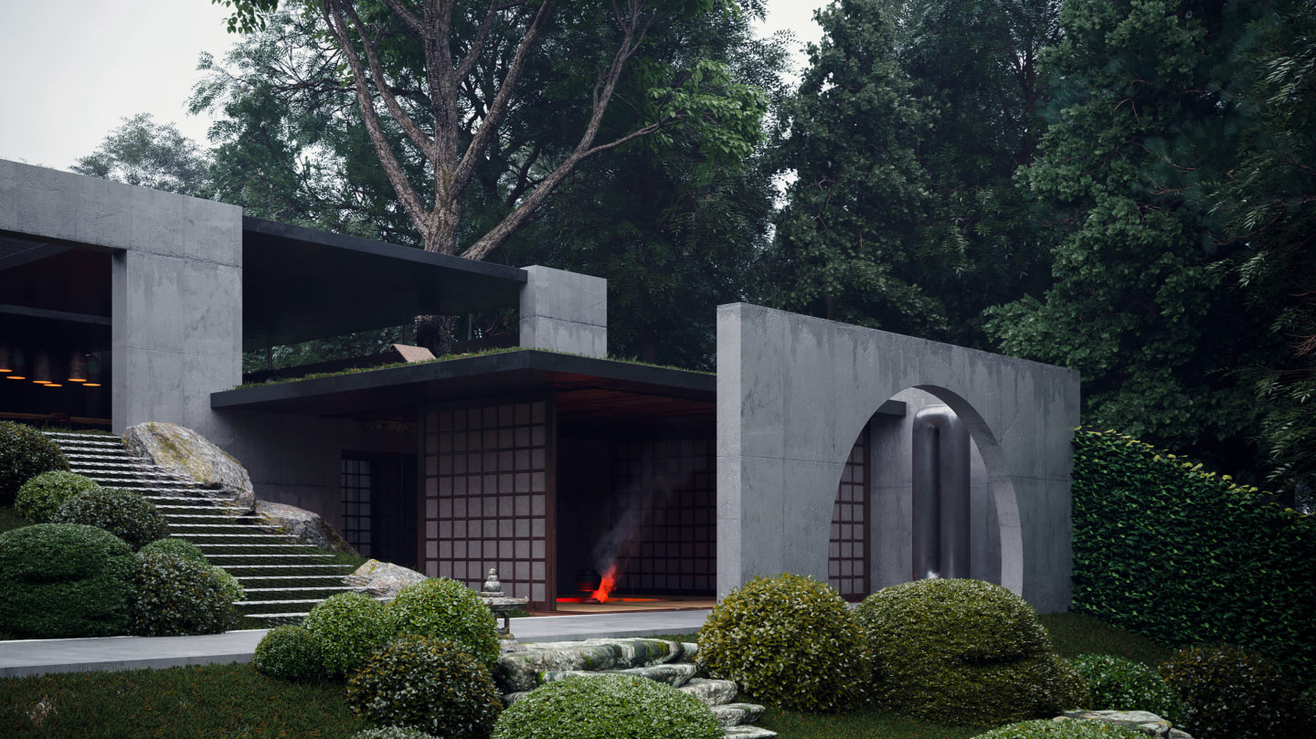 La ‘Oko House’, y todos sus sublimes detalles inspirados en Japón, han sido diseñados y renderizados en forma tridimensional por el estudio ucraniano Sergey Makhno Architects.