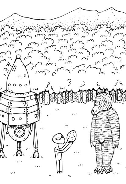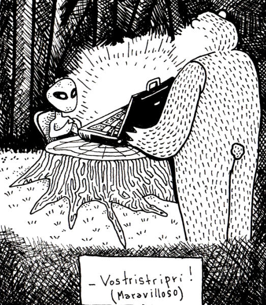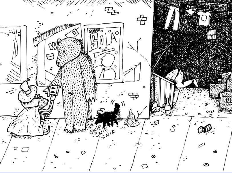 Sus dibujos, cuentan historias de libre interpretación.