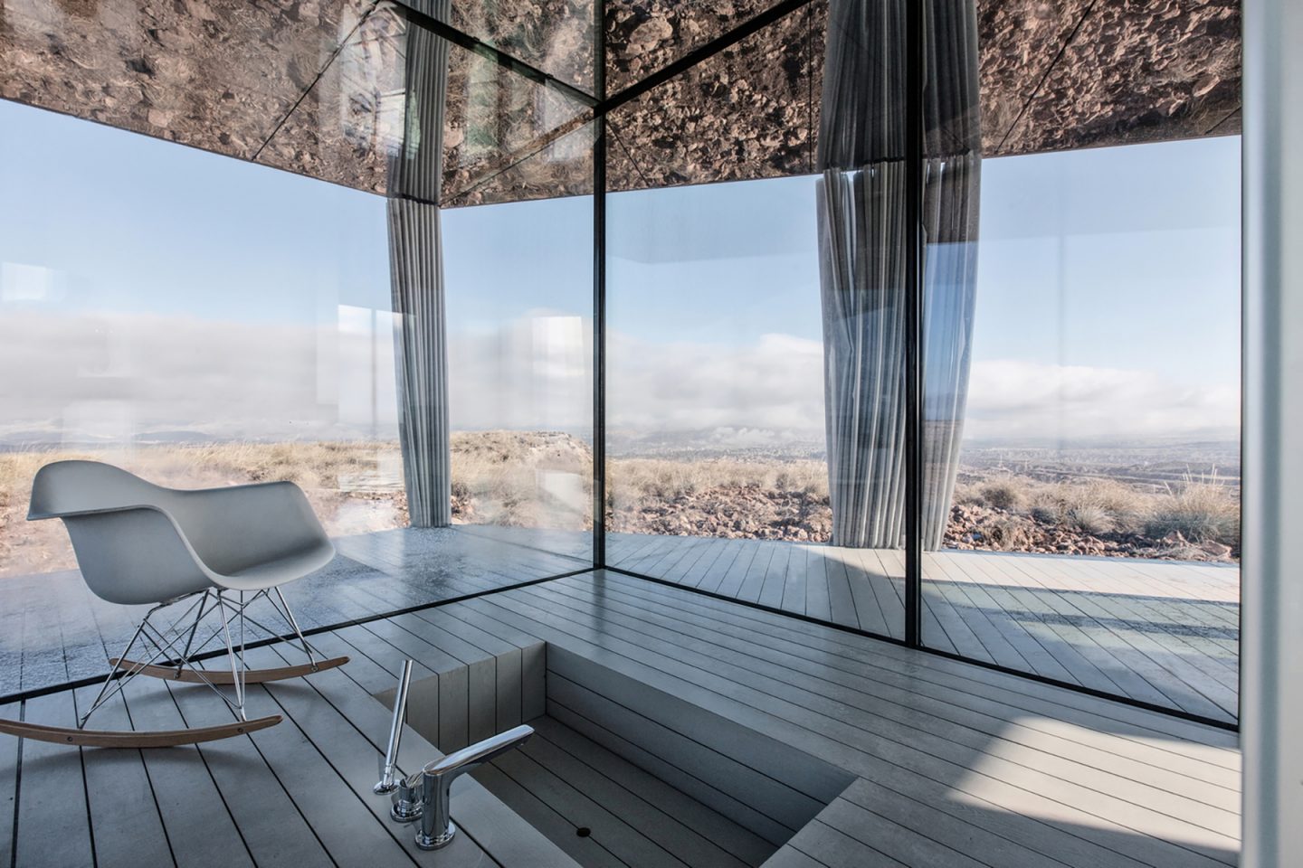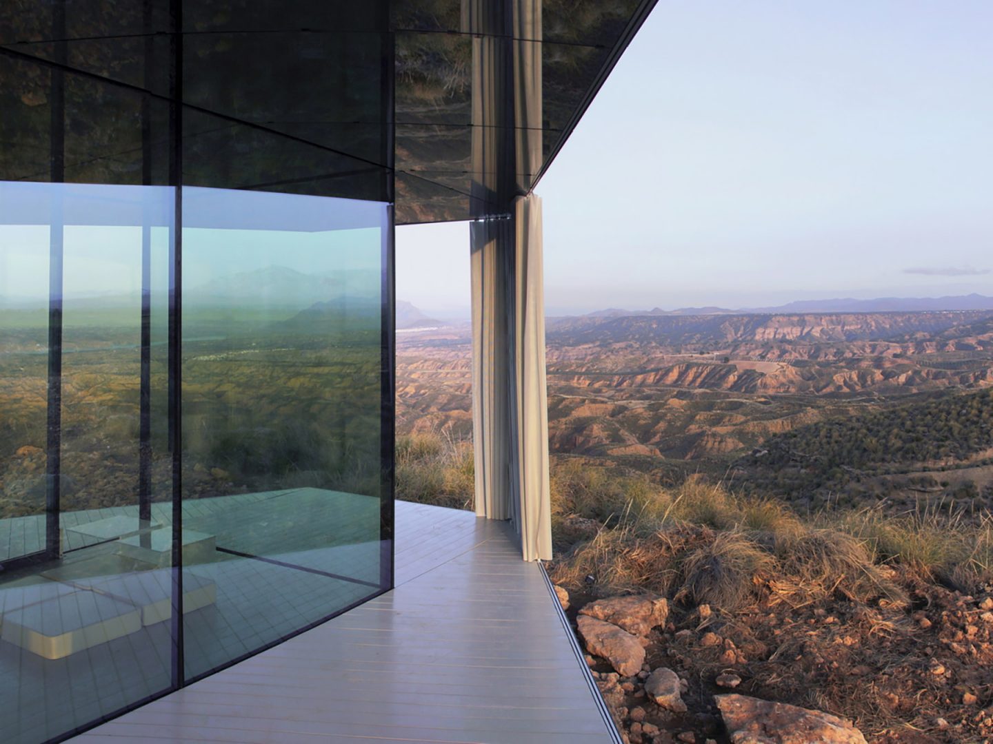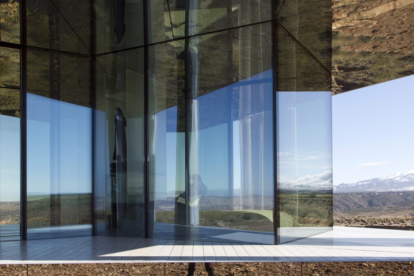 Situada entre las llanuras desérticas de Gorafe, la empresa eslovena OFIS Arhitekti ha diseñado un pabellón de cristal con espejos que ofrece vistas protegidas e incomparables del paisaje andaluz y del cielo nocturno.