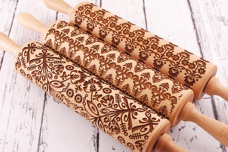 Hechos en madera y con una trama en su superficie tallada con laser, estos palos vienen con dibujos y formas super delicados, que te permiten darle un toque especial a tus creaciones culinarias.
