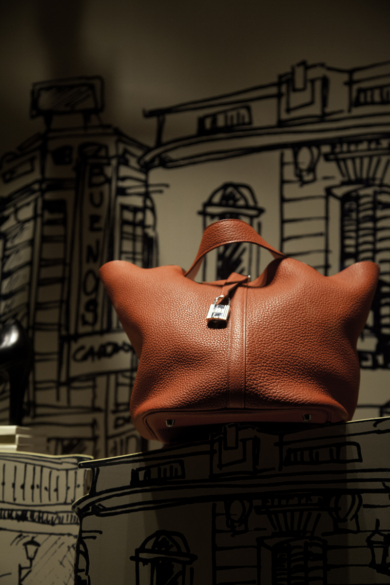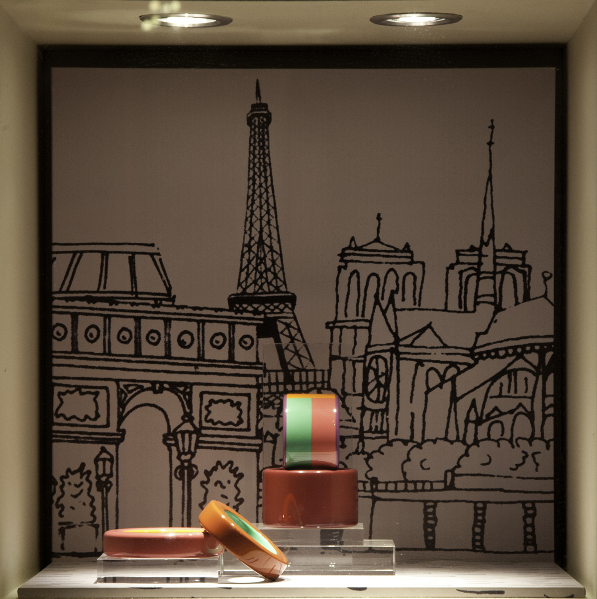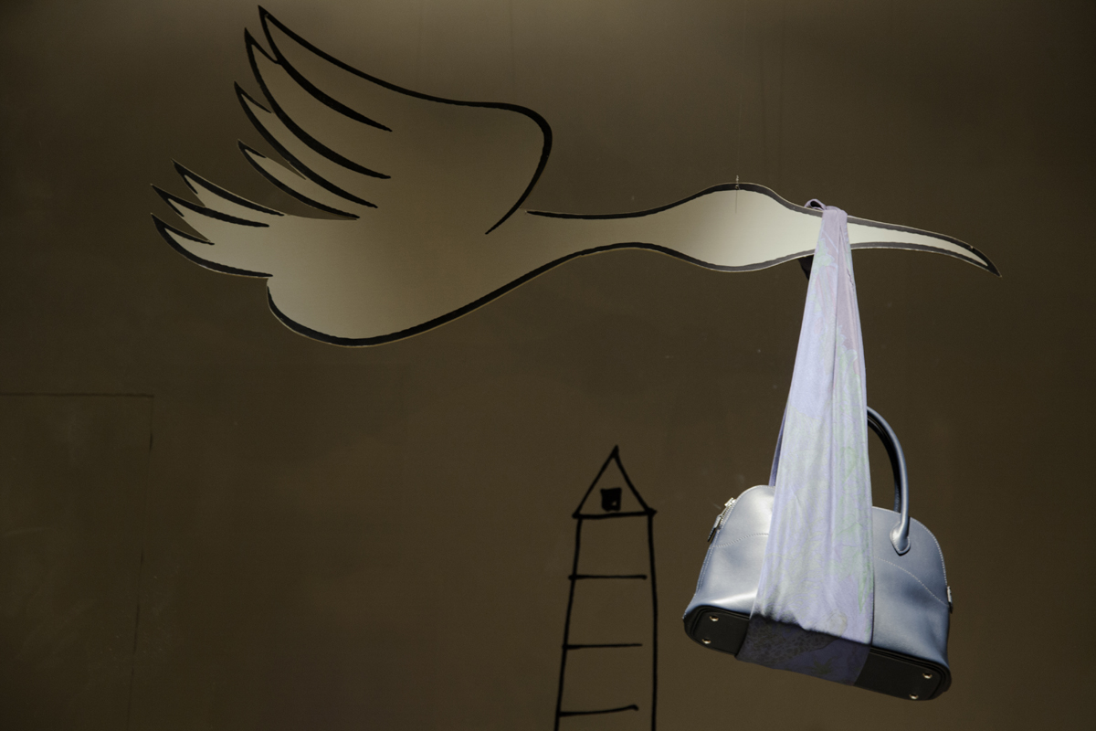 La inspiración parte de un paralelismo entre dos ciudades hermanas como lo son Buenos Aires y París, donde el obelisco, el cabildo y un congreso de estilo arquitectónico marcadamente francés se mezclan con la Tour Eiffel, el Arc de triomphe, Les invalides y el Hôtel de Ville. Vuela entre ambas una cigueña que, con un carrè de seda en el pico, anuncia la llegada de los nuevos productos desde su país de orígen.