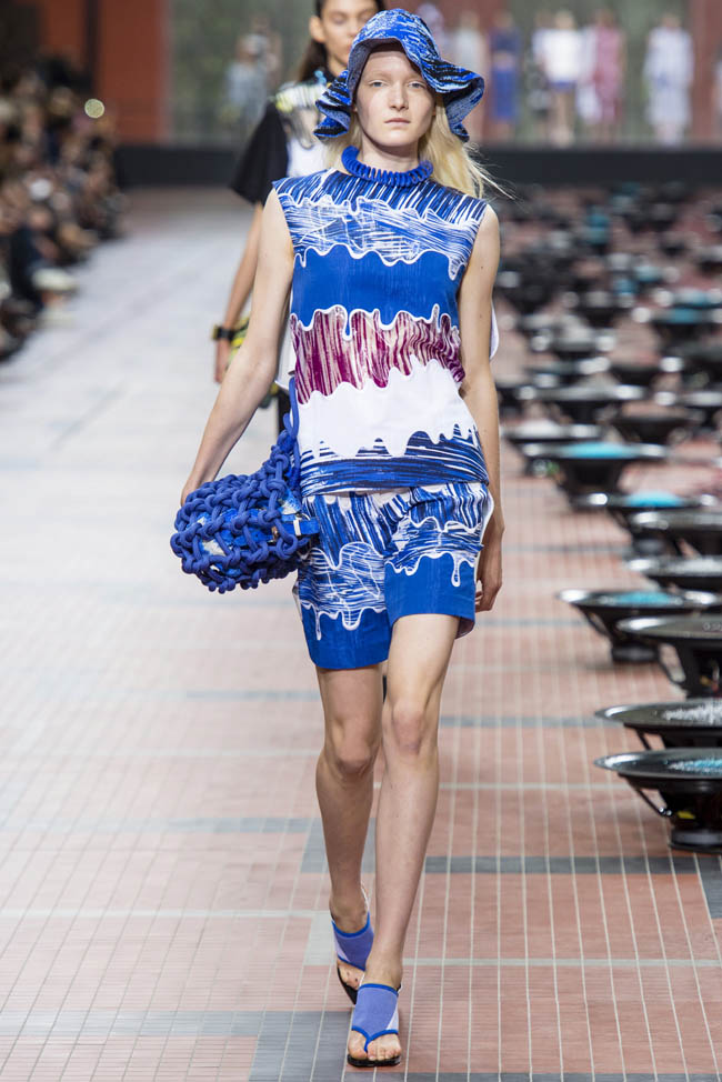En esta oportunidad la inspiración vino del mar, el movimiento de las olas y las texturas que genera la luz cuando pega en el agua. De ahí no solo se recuperan estampas con influencias acuáticas sino también la morfología de las prendas que hasta en los cortes presenta ondas que simulan ser olas.