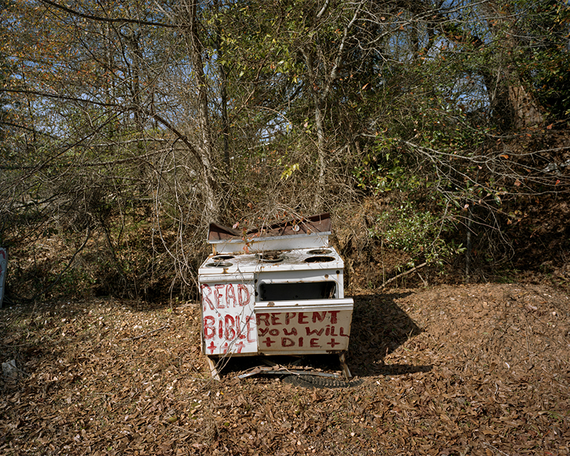 Este trabajo representa una exploración en curso de Alabama, hogar para generaciones de mis familias maternas y paternas. Las imágenes son una continuación simbólica de los viajes por carretera que tomaría con mis padres cuando era niño para visitar a mis abuelos en Tuskegee. A menudo habría desvíos en el camino, lo que daría tiempo a las trampas para turistas de Alabama o a dejar flores en las tumbas de los difuntos. Después del fallecimiento de mis abuelos a principios de la década de 1990, nuestros viajes a Alabama se hicieron cada vez más esporádicos, y mis lazos con el paisaje se desgarraron. Desde 2009, he estado haciendo viajes regulares a Alabama en un intento por reconectarme con la tierra y la comunidad a la que mi familia llamaba hogar.