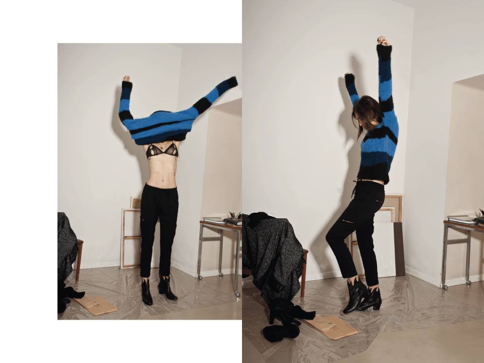 Todo el espíritu rebelde de Emin se transladó a la campaña y al lookbook, donde se recrearon escenas de la vida que la artista supo convertir en instalaciones. Desnudos, el proceso de vestirse y su forma de trabajar fueron la inspiración para las imágenes capturadas por la lente del Gato Suaya.