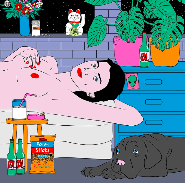 Kine Andersen creció en la década de los 90. Debido a esto, que absorbe la energía excesiva de la época de las bandas de chicos, cazadoras de neón, y los atascos de la pista de baile. Andersen dice “Tengo dificultades para comprender mis propios sentimientos, por lo que es más fácil para atraerlos” Andersen fue expuesto a una amplia gama de normas no escritas y los estereotipos que ella no quería ser parte de. “Me sentí como un extranjero la mayor parte de mi adolescencia, Por lo tanto, mis ilustraciones son muy solo.” Sus almas solitarias imágenes incluyen un tipo acampando fuera del supermercado y beber la misma cerveza todos los días, y la chica salir con su gato fumar. En cierto sentido, que es una reminiscencia de la forma en que los libros Haruki Murakami cuestionan la dicotomía de abandono y que pertenece.