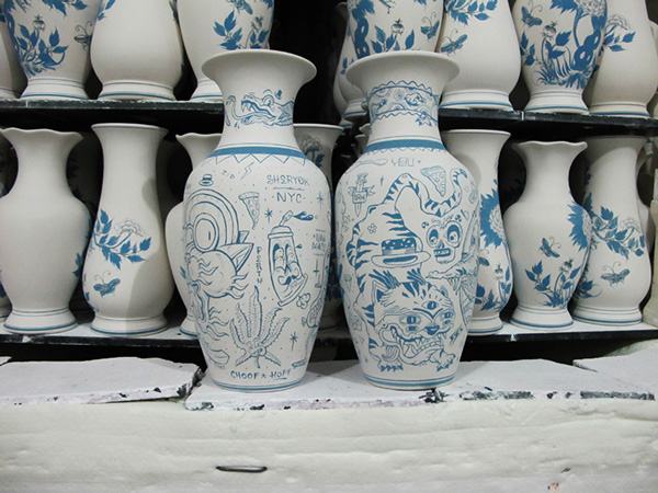 Nos encanta cuando los artistas callejeros se animan a divertirse usando otras superficies para sus piezas, tal vez será por eso que quedamos fascinados con el trabajo de The Yok, que crearó esta serie de vasijas y platos de cerámica pintados a mano en Vietnam.