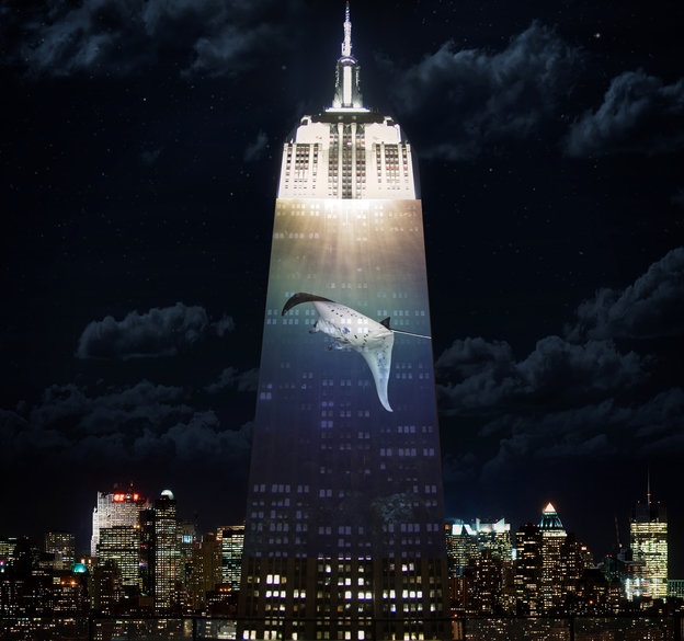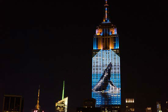 Los artistas Louie Psihoyos y Travis Threlkel proyectaron sobre el emblemático Empire State de Nueva York distintas imágenes de animales en peligro de extinción para generar conciencia.