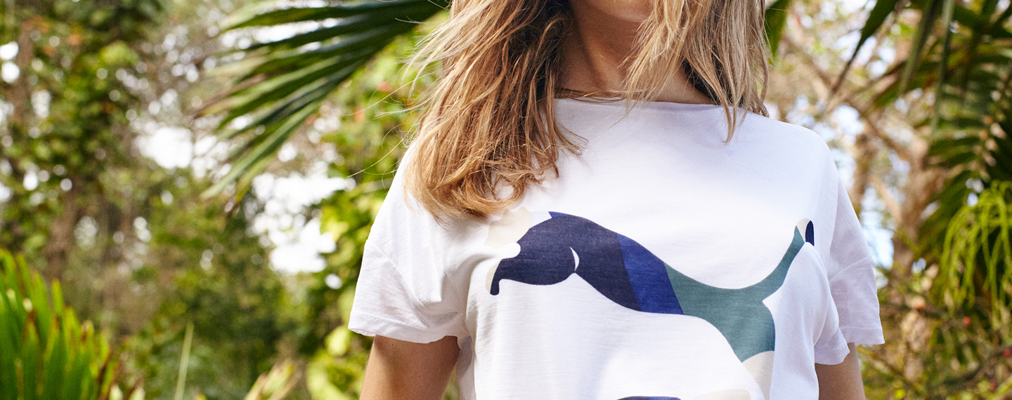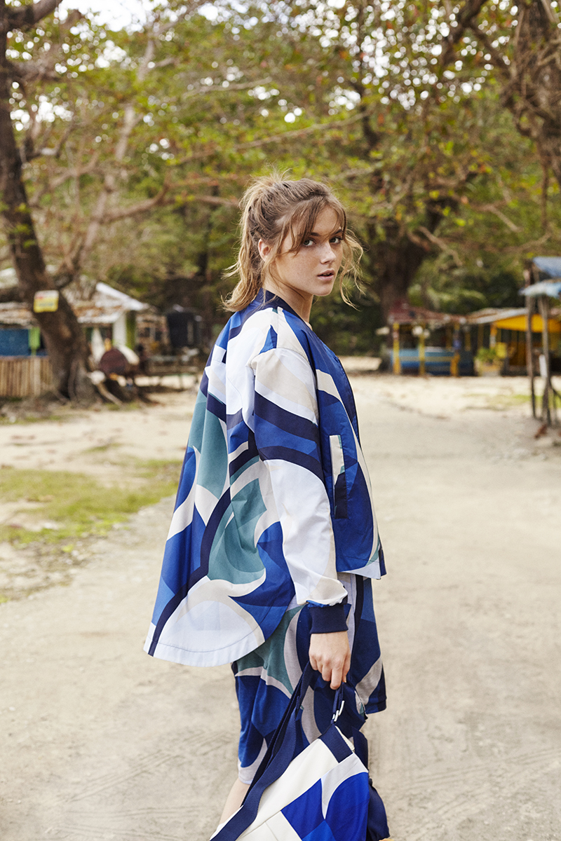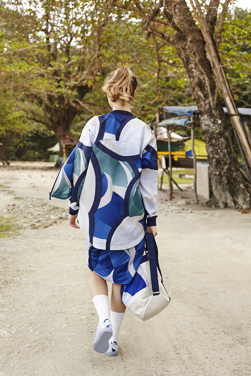 Lejos de las flores y más cerca del arte abstracto, esta temporada la colección se inspira en los viajes de la artista alrededor de Asia, reinterpretando el clásico dibujo de nube japonés en una serie de estampas geométricas en las que predomina una paleta de color en tonos neutros con toques azules, con gruesos delineados en negro, y que abarca siluetas tanto de Sportstyle como la línea deportiva de la marca.