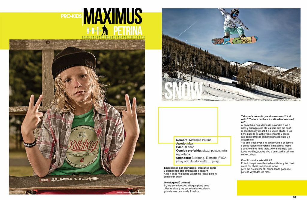 Una de las principales novedades es que la revista cuenta con dos tapas, una relacionada a los deportes y otra al lifestyle presentando a un celebrity amigo de las tablas, en este número la gran Anita Alvarez de Toledo, que cuenta su fanatismo por la nieve y su pasado bodyboarder.