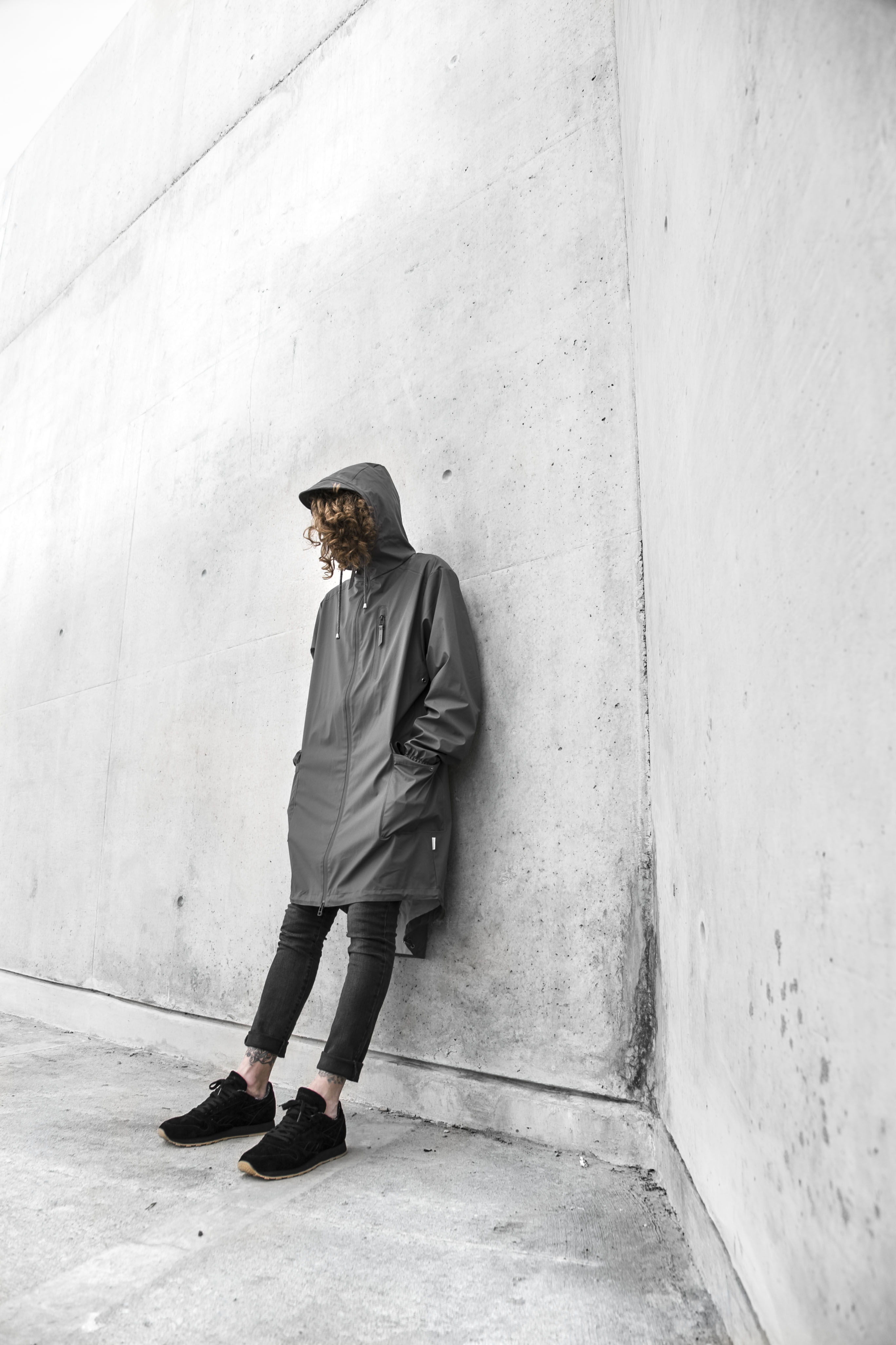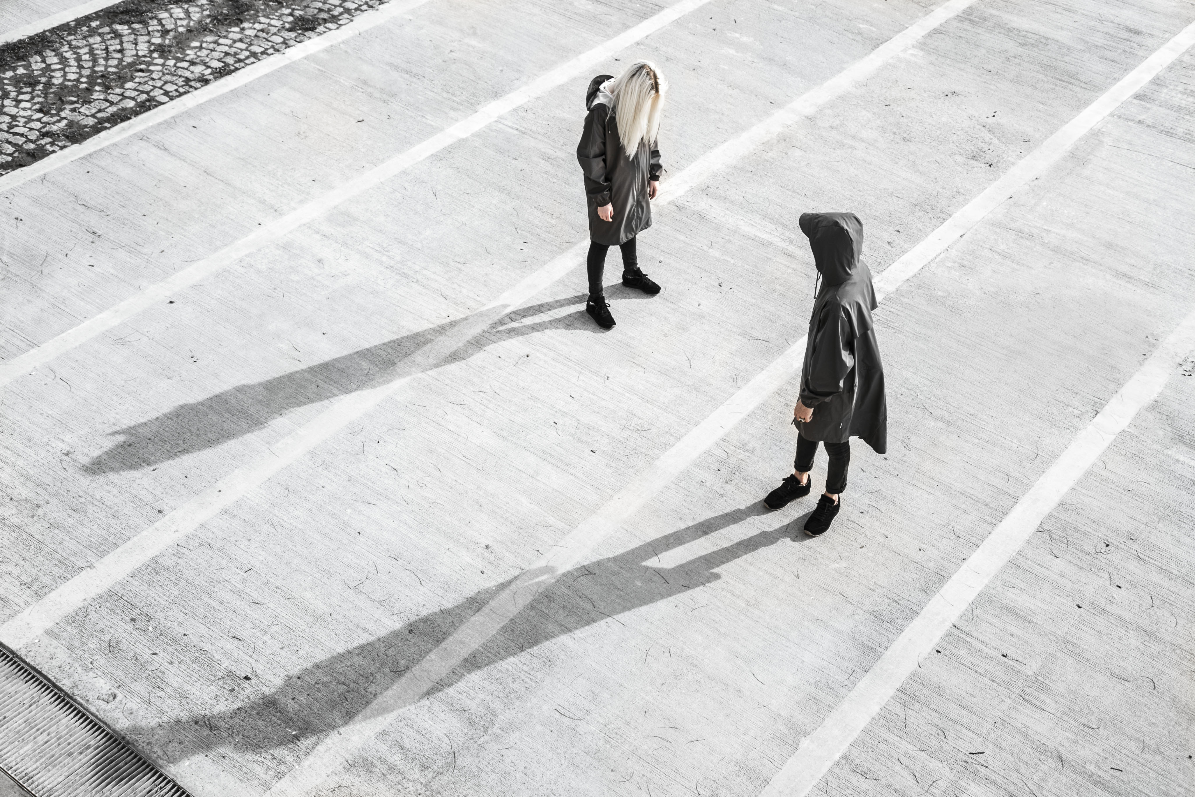 Con una idea clara, donde queríamos romper con las típicas producciones de moda y de foto producto, elegimos generar un clima de misterio con dos personajes distópicos de otro tiempo y lugar, emplazados entre un paisaje lleno de cemento.