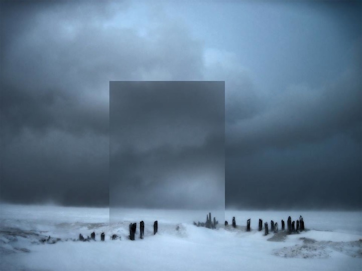 Blureando e integrando los bordes es como Siemer logra que perdamos la relación entre la imagen y el reflejo, siendo casi imposible distinguir los elementos agregados y los propios de la imagen.