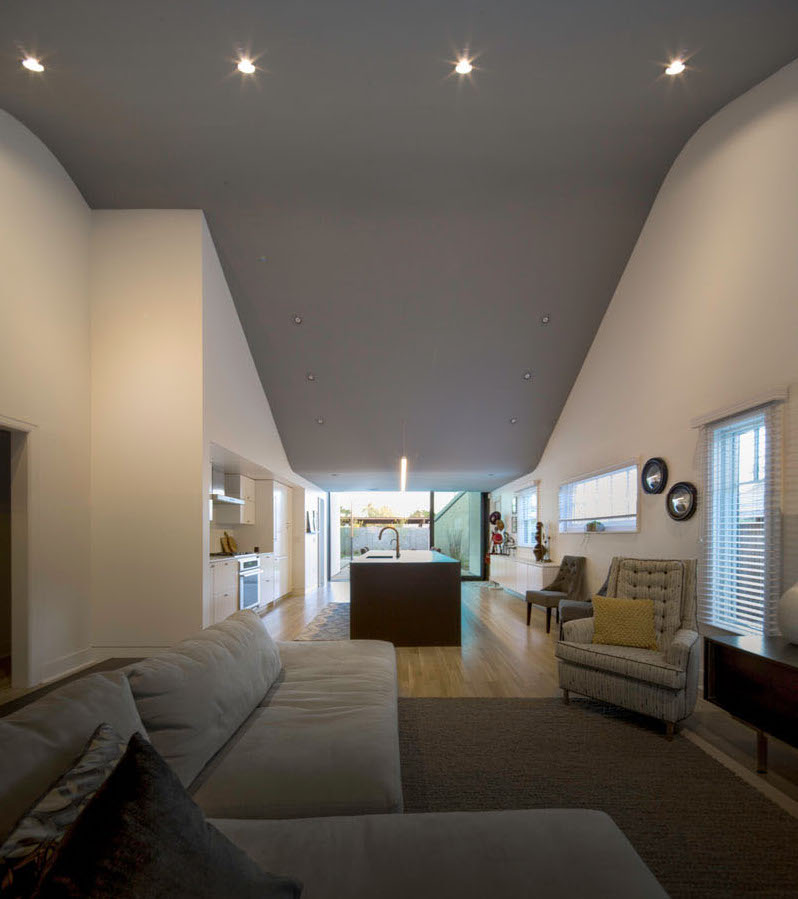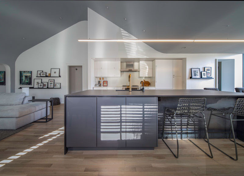 Para hacerla, se eliminaron todas las paredes originales que dividían el living, el comedor y la cocina para generar un único espacio abierto para las actividades sociales. En la habitación, los grandes ventanales dejan entrar la luz para crear un ambiente luminoso, y las líneas dirigen la mirada hacia el patio exterior de la casa.