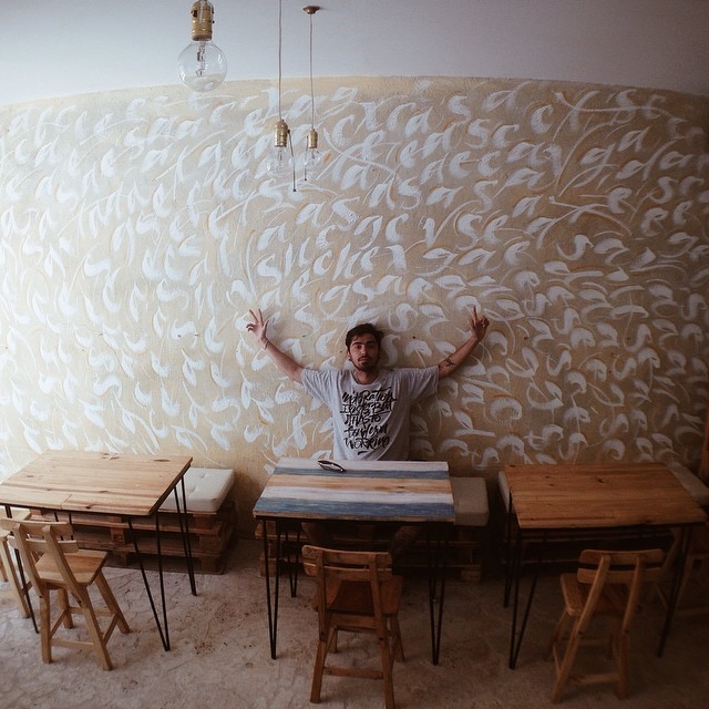 Este diseñador lleva la caligrafía al punto del arte, haciendo murales, remeras, postales, interviniendo distintos elementos…