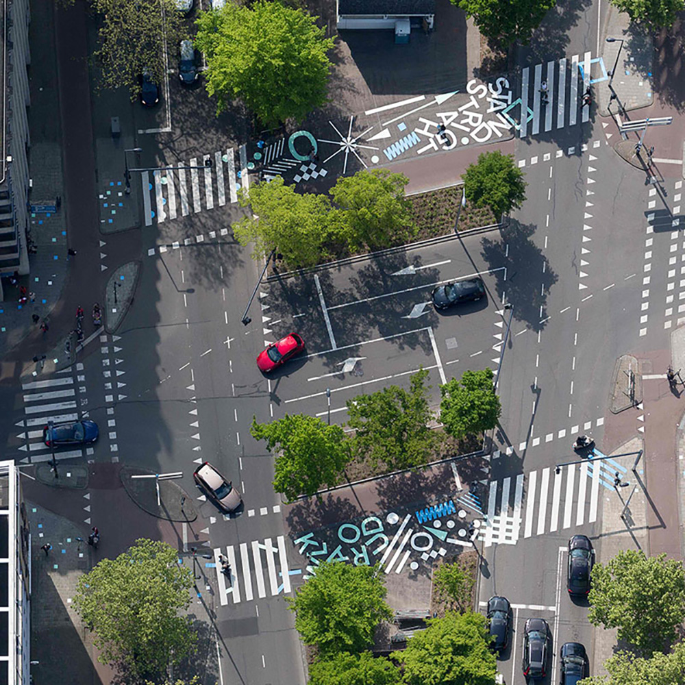 La agencia local de urbanismo especializada en experimentos urbanos Street Makers en colaboración con el estudio creativo Opperclaes, han sido los creadores de esta acción de Urban Art. En tan solo dos días consiguieron una divertida pieza de arte en uno de los cruces más transitados de la ciudad, el Westblaack. «Hacer la ciudad no es sólo un trabajo para los planificadores y arquitectos. Necesitamos diferentes disciplinas creativas para acelerar la transición hacia una ciudad sostenible, sana, inclusiva y exitosa», dice Jorn Wemmenhove, estratega creativo de los Street Makers.