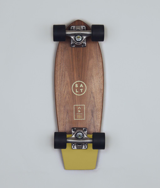Con 22 pulgadas de largo, capas de nogal y arce, los skates de SALT no solo se ven muy pero muy cancheros sino que se la bancan. El deck está pintado con una fina capa de material antideslizante para asegurar el grip sin cambiar el tono natural de la madera. La lija pasa a la parte trasera, con una suave elevación para mejorar el control, y viene en tres tonos: mostaza, menta y gris. Ideal para andar por la calle y colgarlo de la mochila cuando llegamos a destino.
