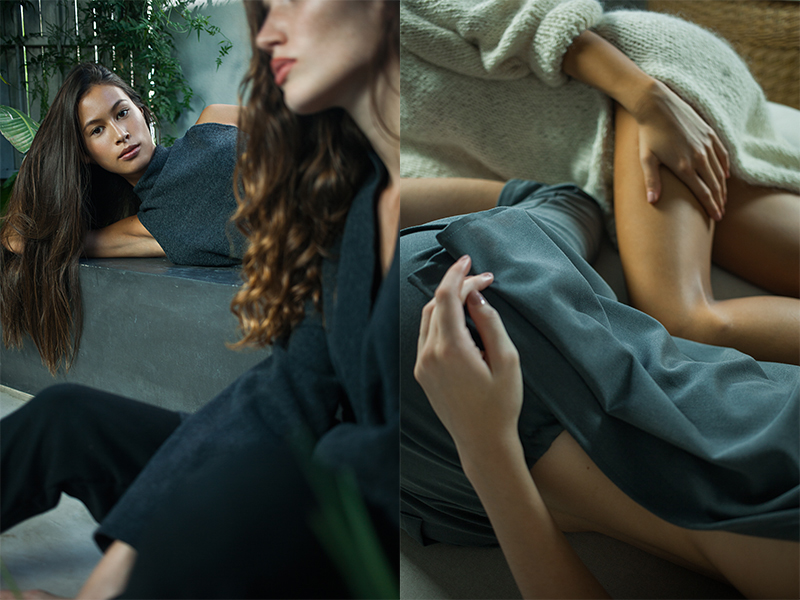 Son estas texturas las que se llevan todos los laureles esta temporada, un punto que une esta cápsula con el resto de las piezas de la colección, con batones, vestidos, tope y pantalones en sedas, lanillas y algodones, y con tapados y chalecos en paño de lana. Todo hace referencia a los paisajes de nuestro país, no solo con sus llanuras y montañas sino con sus colores, una paleta que Julia decidió mantener neutra para emparentar con la región y a su vez respetar la fuente de la materia prima lo máximo posible, descartando tinturas para los hilados.