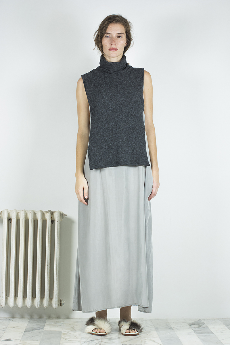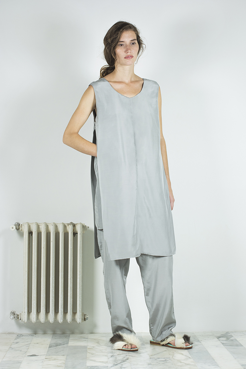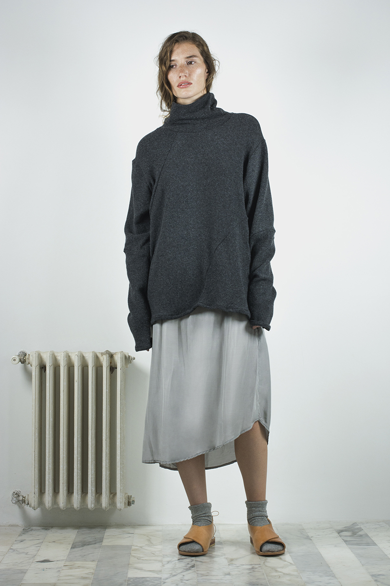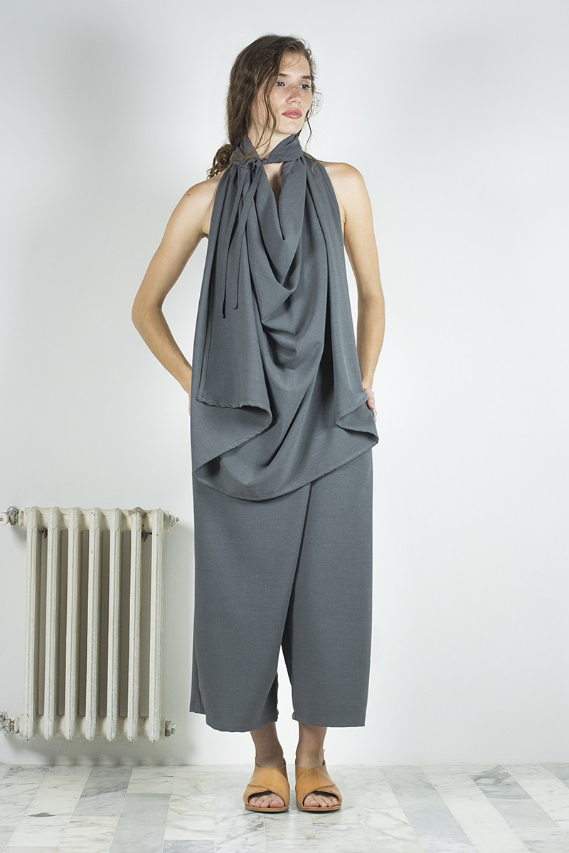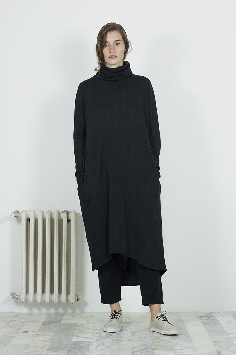 El cierre lo dan los básicos, o “cotidianos”, una línea que se generó teniendo conciencia sobre la falta de extremos que nos está dando el cambio climático, y la necesidad de tener prendas funcionales, de todos los días, con las que puedan complementarse el resto de las piezas más complejas que conforman la colección. Hechos con algodón orgánico peruano, los clásicos son una gama de gamuzas, vestidos, remezones, polleras y ponchos que resultan indispensables para sentar los cimientos de cualquier guardarropas.