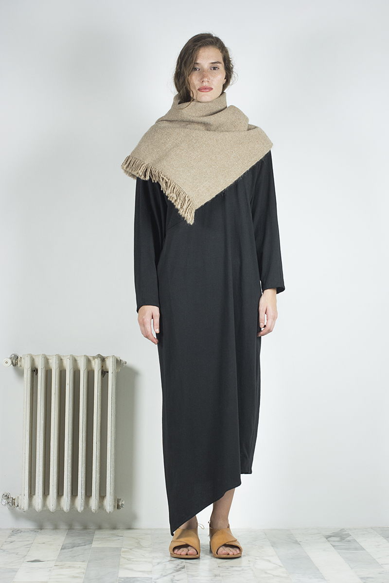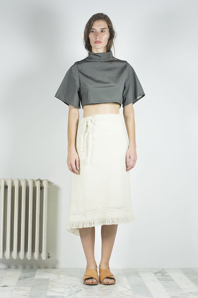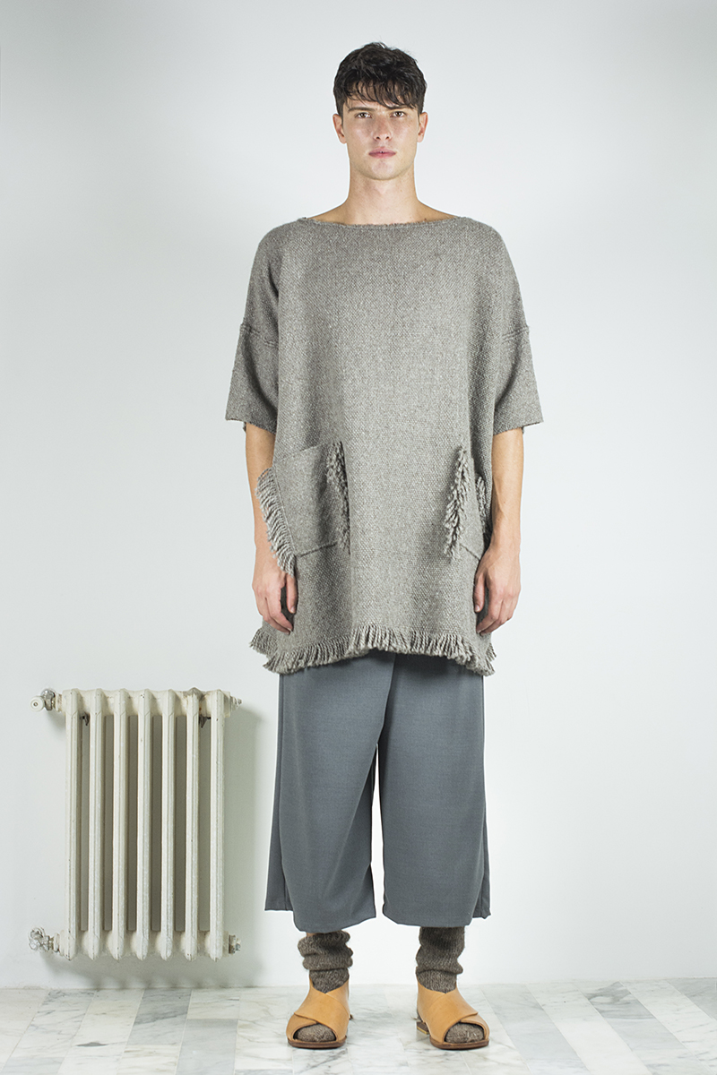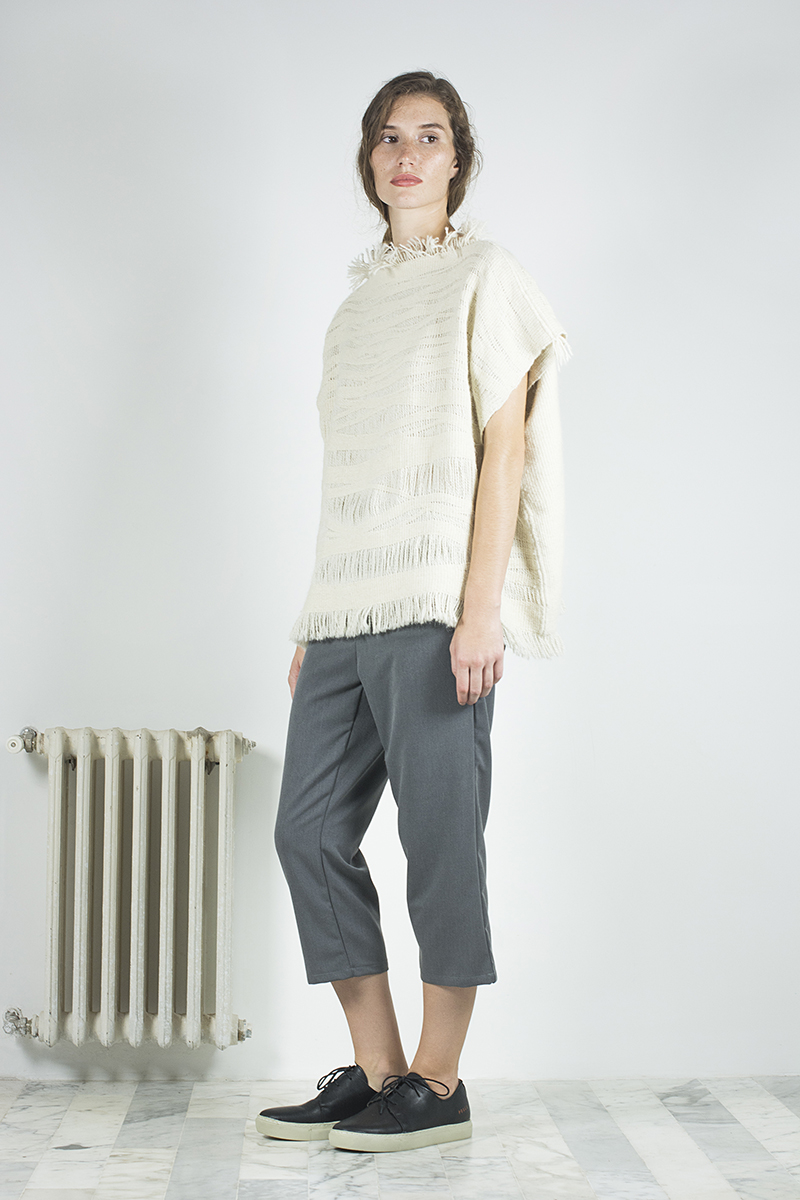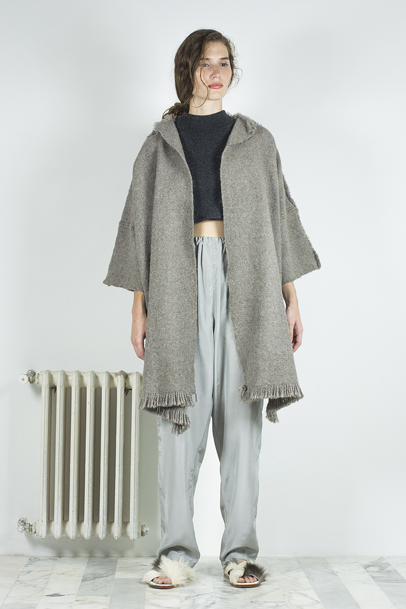 Probablemente para ella haya tenido mucho mas que ver con el viaje que arrancó hace ya un tiempo para desarrollar lo que hoy es el eje central de su nueva colección, una colaboración con Miriam Atencio, artesana oriunda de la provincia de San Juan, llamada Raíz. Consiste en una serie de 12 prendas bajo un abanico de diversas tipologías, todas realizadas en telar con fibras de llama provistas por el Programa de Camélidos de los Andes.