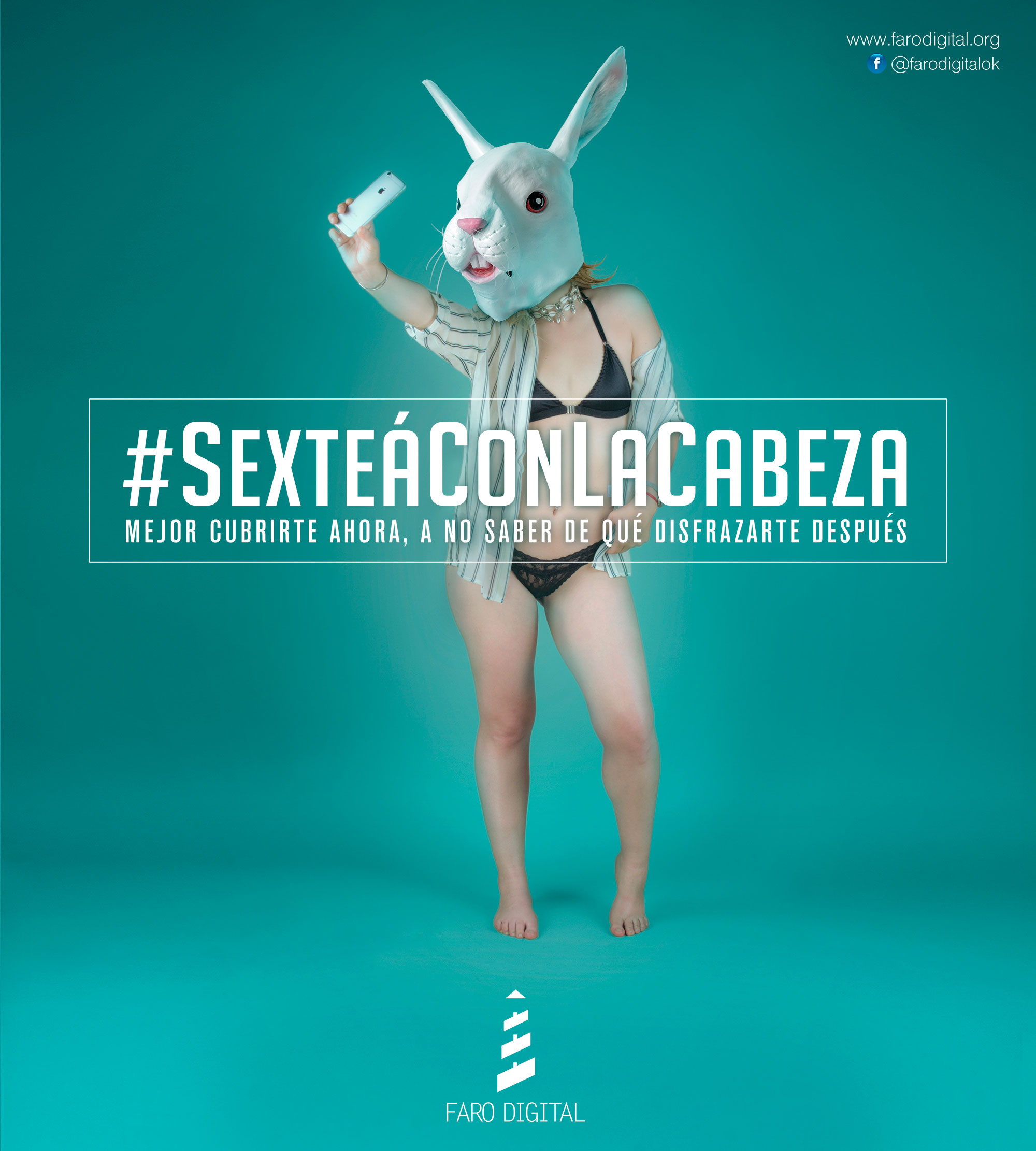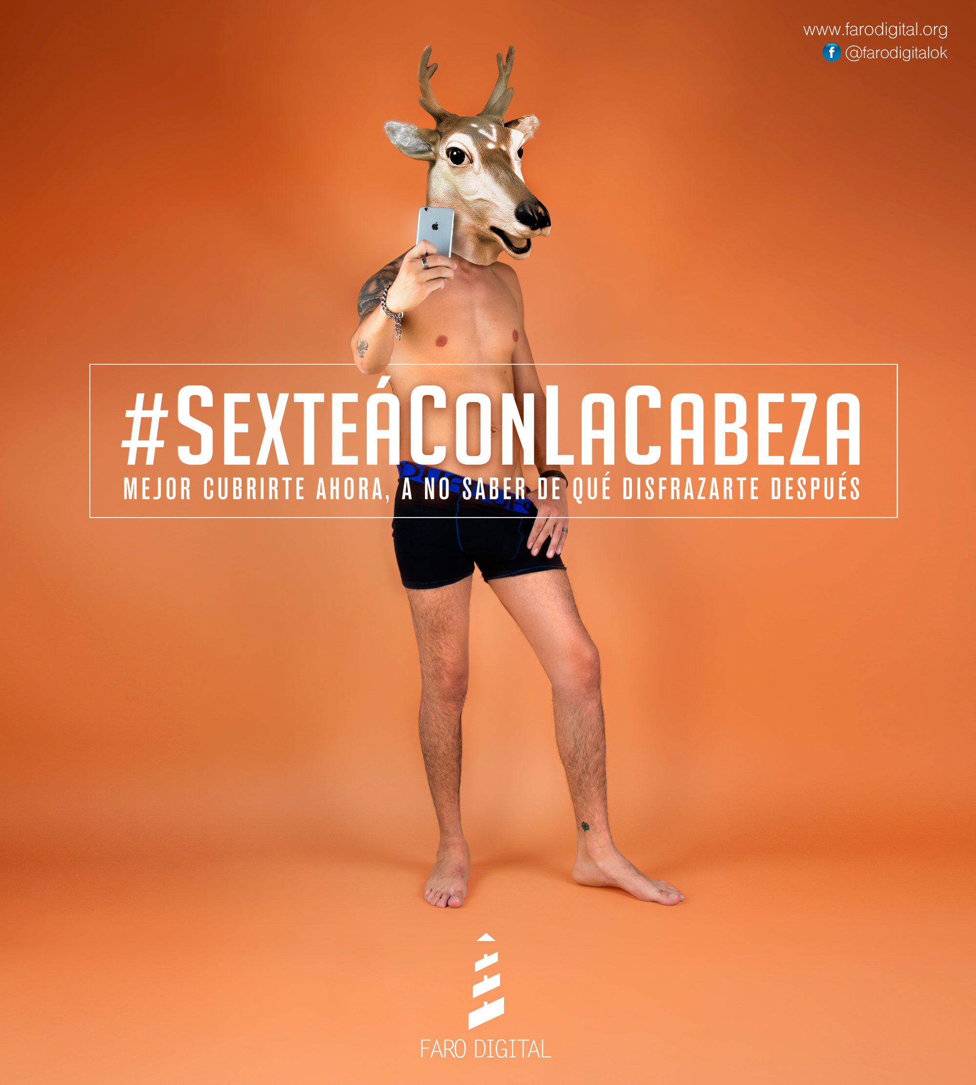 Faro Digital trabajó en alianza con la agencia Cósmica para crear dos piezas que transmitan un mensaje que incluya libertad para transitar las sexualidades también en el mundo digital pero haciéndolo con conciencia y utilizando herramientas que permitan cuidar la privadidad e intimidad. Para eso se muestran dos jóvenes, una mujer y un varón, en posiciones sensuales pero con máscaras de animales que les tapan la cabeza.