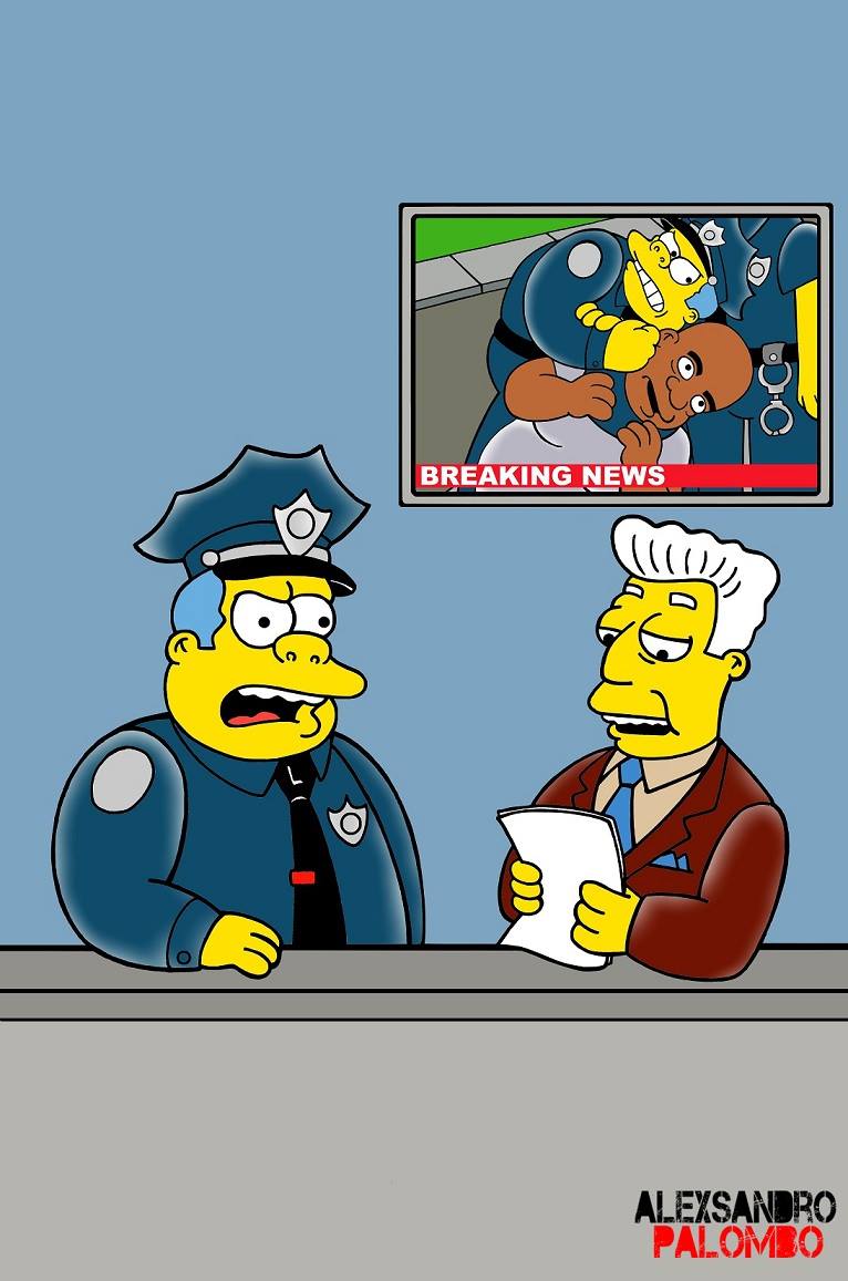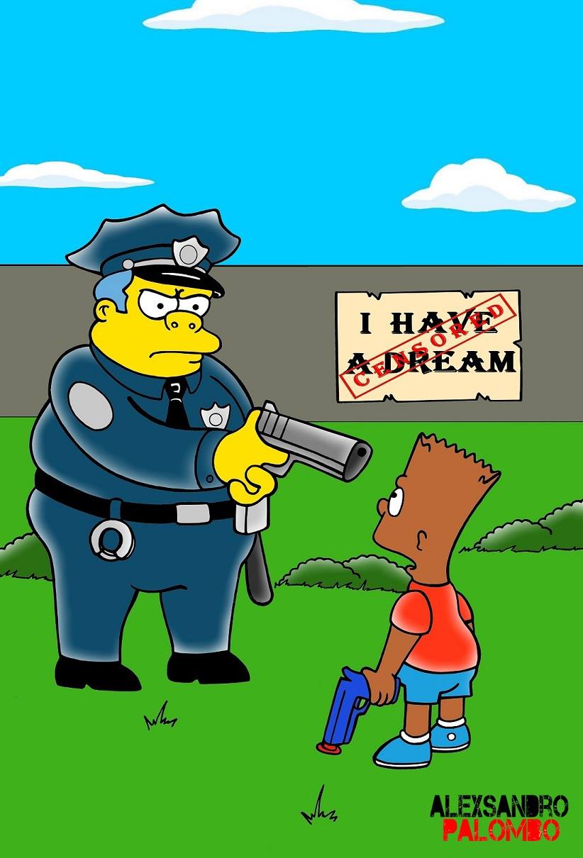 Con la creciente ola de manifestaciones sociales en Estados Unidos, numerosas expresiones artísticas fueron surgiendo. Alexsandro Palombo se subió a la ola, y usando a Los Simpsons como portadores, alzó su voz divulgando un mensaje antirracista. Se pueden leer conocidas frases como “I have a Dream” de Luther King, o “I can´t breath”, que fue lo que Eric Garner trataba de gritar desesperadamente mientras era ahorcado sin piedad por la policía neoyorquina.