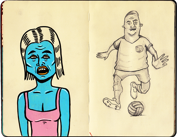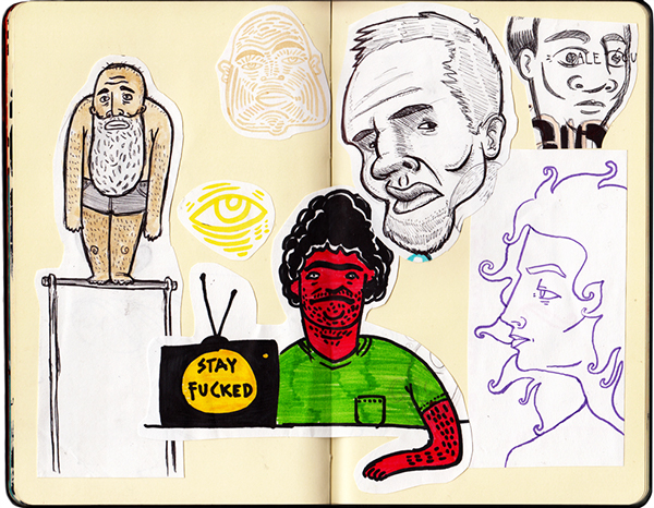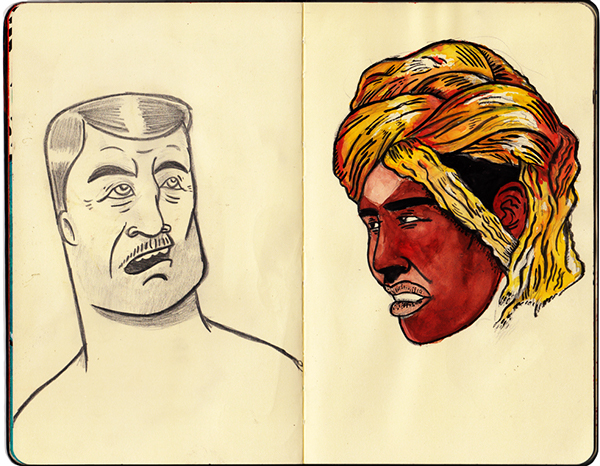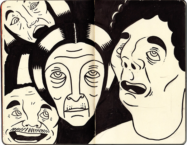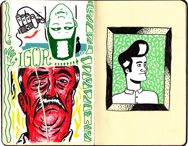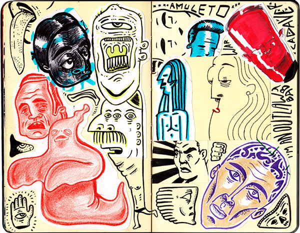 Acá dejamos una serie de dibujos hechos en su cuadernito estilo “moleskine” o Sketchbook…