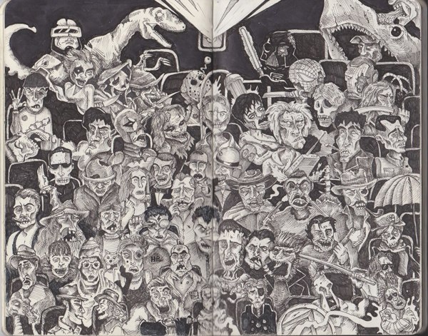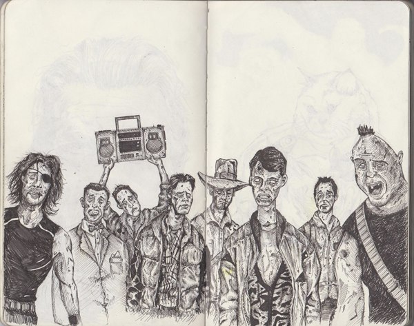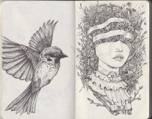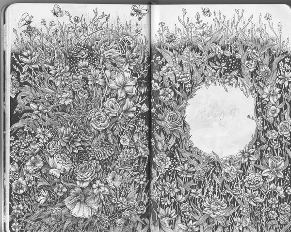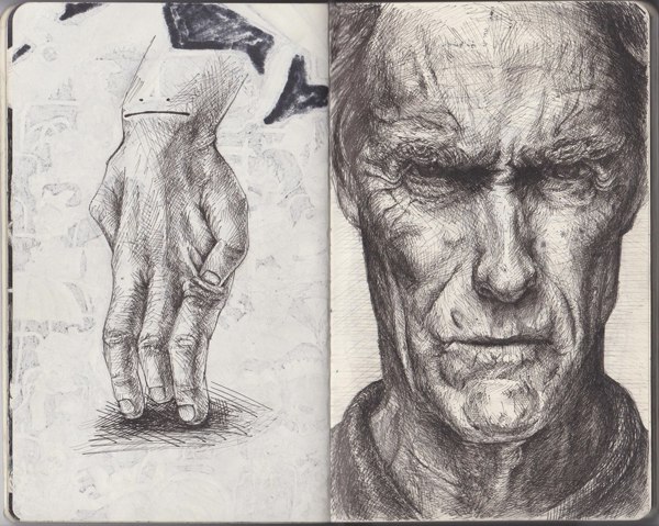 Encontramos en su cuenta de behance estos dibujos hechos en un típico cuadernito de viaje.