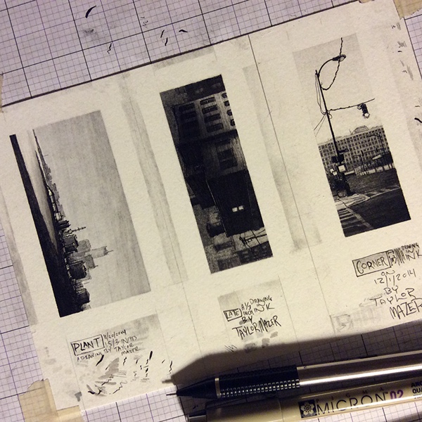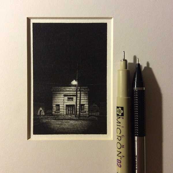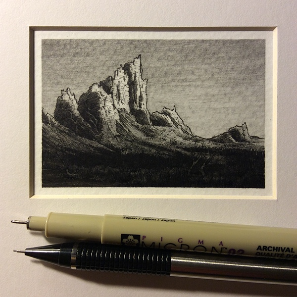 Con base en Michigan, el artista gráfico Taylor Mazer ilustra con microficha, lápiz y reglas milimétricas estos pequeños paisajes que, como mucho, llegan a medir 3 centímetros de lado.