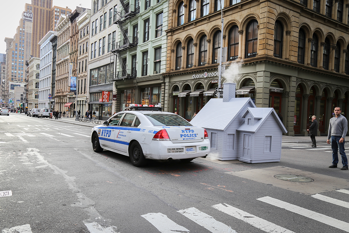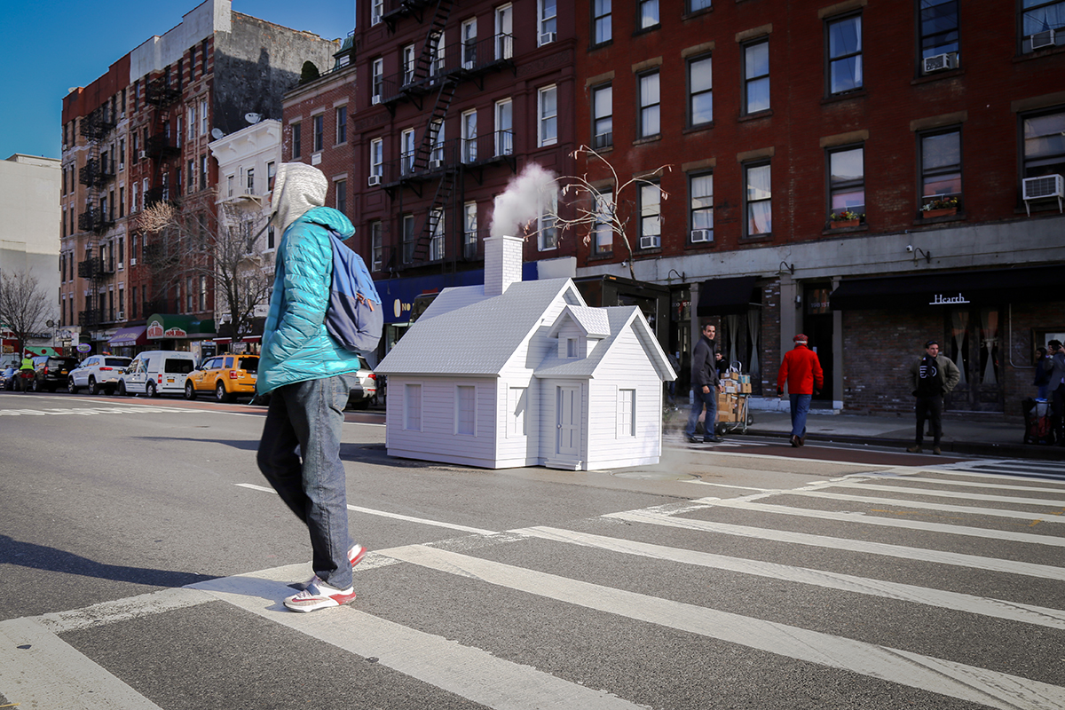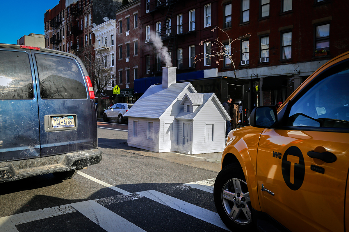 Para su proyecto Smökers, el artista alemán Mark Reigelman construyó un pequeño chalet alemán blanco que fue colocando en las famosas alcantarillaste la ciudad de Nueva York, logrando que el humo blanco salga de las chimeneas de las esculturas.