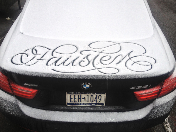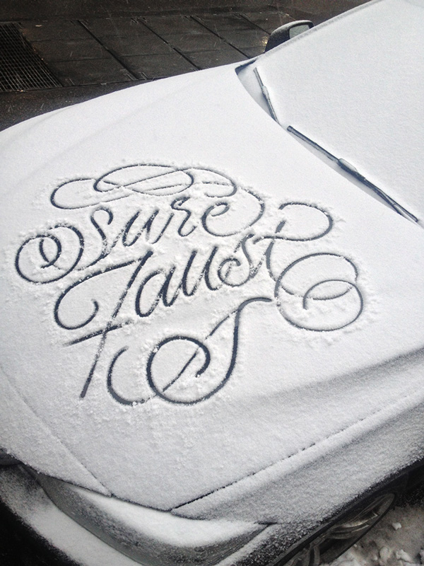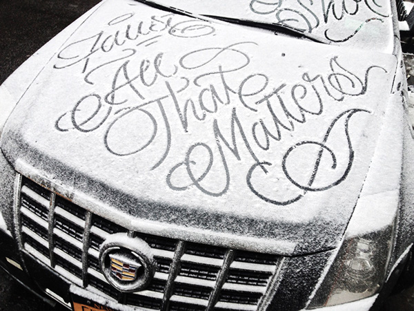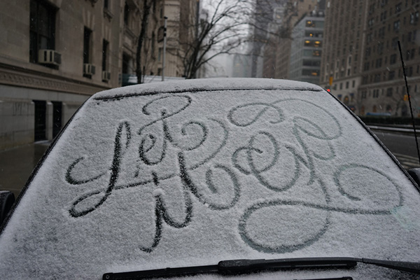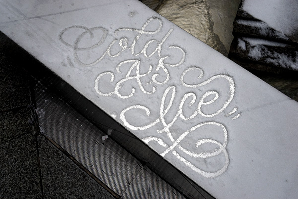 Su especialidad es el “lettering” y por eso aprovechó las nevadas que cayeron sobre la ciudad para hacer su arte.