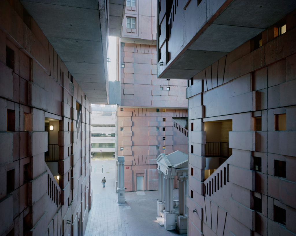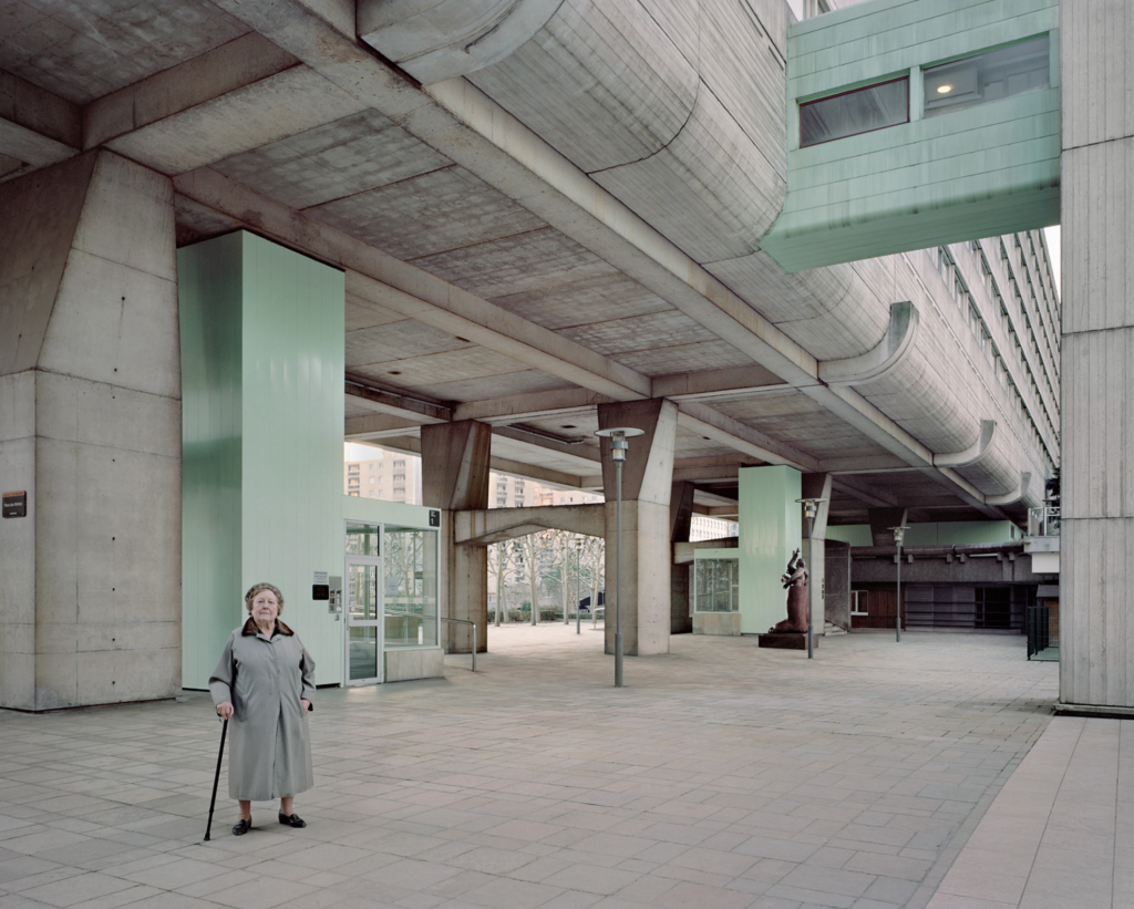 Las imágenes están cargadas de melancolía, en un océano de concreto. Los ángulos geométricos de los edificios se suavizan en la serie con la intervención inesperada en las tomas de los habitantes de estos departamentos, ancianos que le dan una luz diferente a las fotos, capturadas con una cámara analógica de 4×5”.