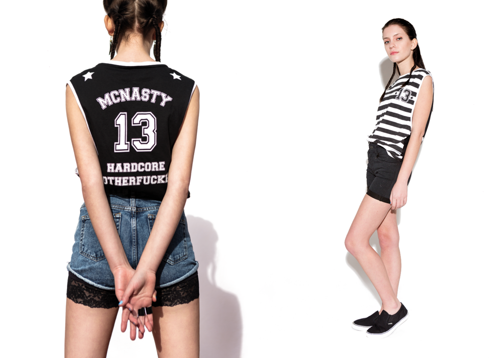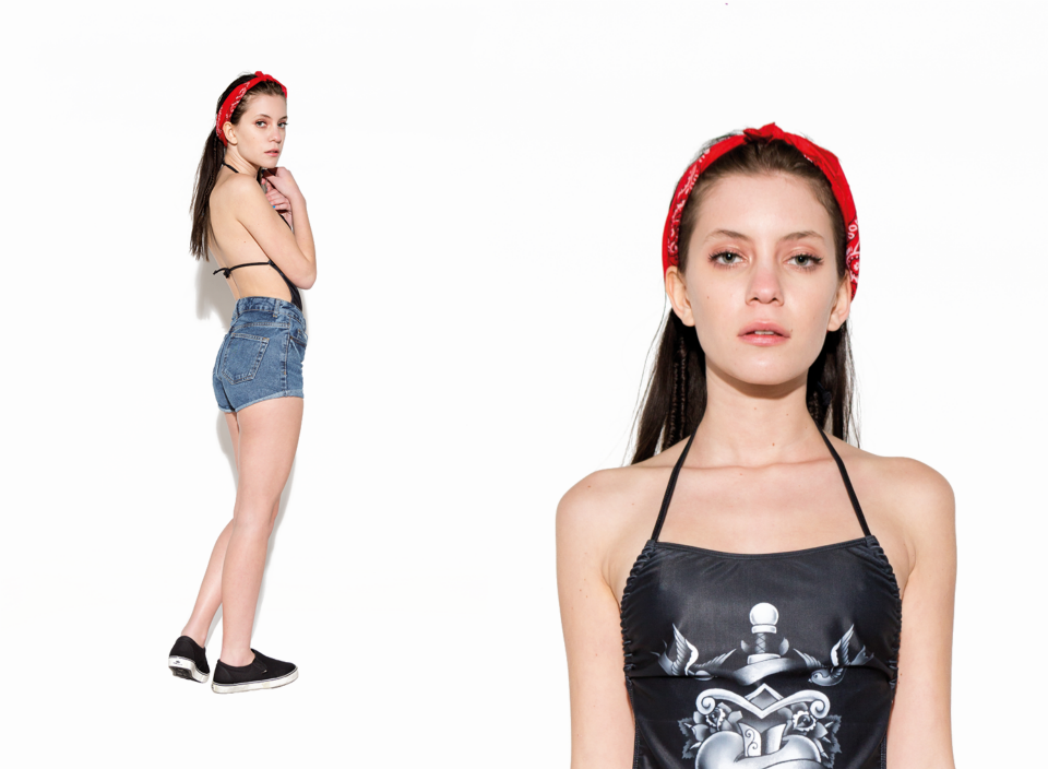Está Inspirada en el skate y el surf femenino de los 80 y 90 y en el movimiento punk Riot Grrrl de los 60 (estampas de tattoo, cuadros Vichy, jeans con roturas, etc.) Le habla a una mujer fuerte y fresca, apasionada por la música y los deportes ¨masculinos¨, que busca la sorpresa y la adrenalina, también en la tendencia y en la moda. Imperdibles las bikinis y bodys para combinar como quieras!