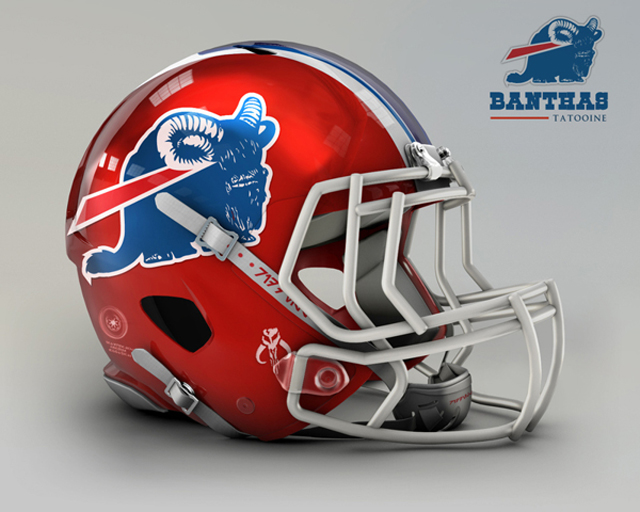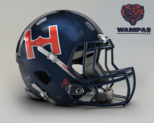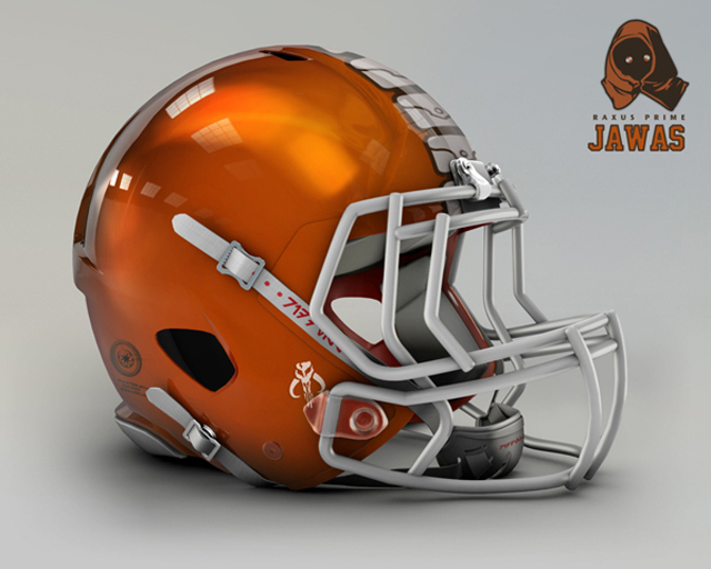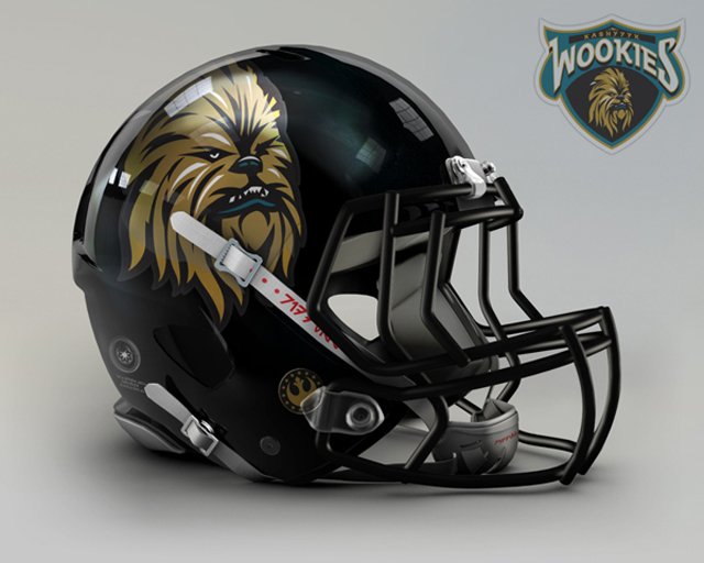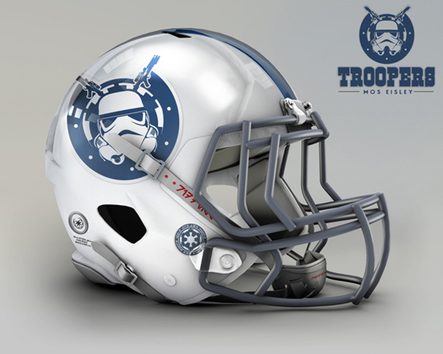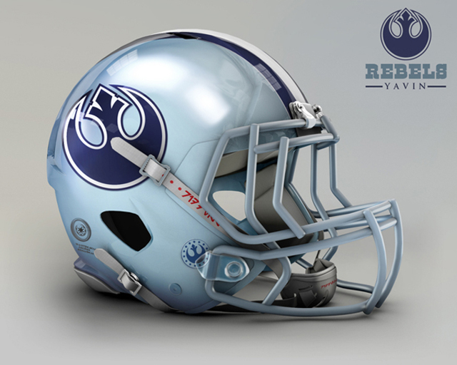 El resultado nos proporciona cascos y escudos de la liga estadounidense de Fútbol Americano, rindiendo homenaje al mundo de las películas de Georges Lucas.