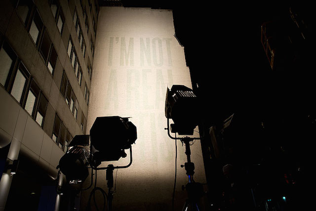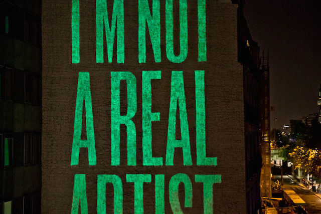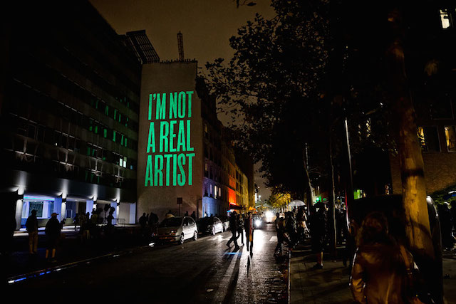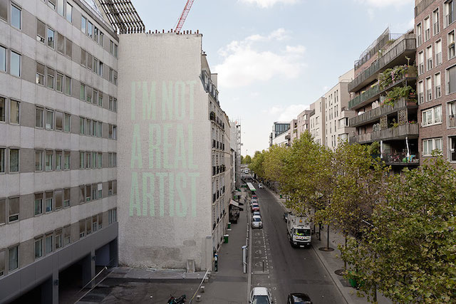 Con cierta fijación con la noche, el artista español SpY vuelve a las andadas en las calles de París, usando pintura Glow in the dark para armar este mural en el marco del festival Nuit Blanche. “I’m not a real artist” dice la leyenda, que sólo puede verse después de absorber la luz del sol durante el día.