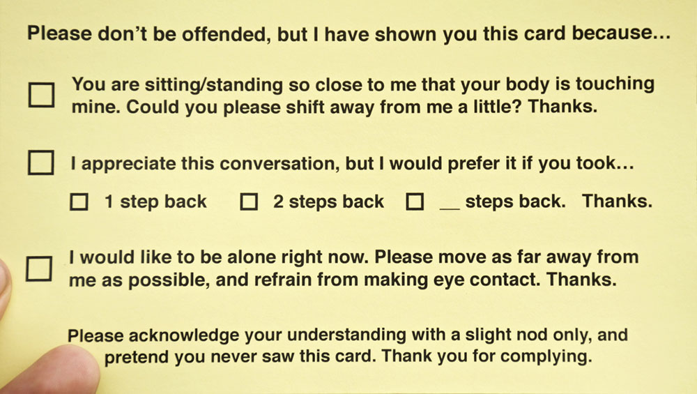 Si pestañeas, tal vez te lo perdés. Camuflados como letreros genuinos en los espacios públicos de los alrededores de Sydney, se pueden encontrar estas pequeñísimas intervenciones urbanas del artista Michael Pederson (aka. Miguel Marquez Outside). Una guía que clasifica que tan solo estás en un parque, botones de pánico exageradamente grandes o tarjetas que marcan tus preferencias en relación al espacio personal, todos sus trabajos parecieran ser algo ridículos, y sin embargo es difícil no pensar que tal vez podrían ser útiles en determinadas situaciones. No te pierdas todo su trabajo siguiéndolo en Instagram.
