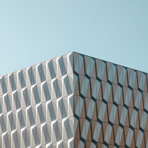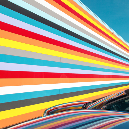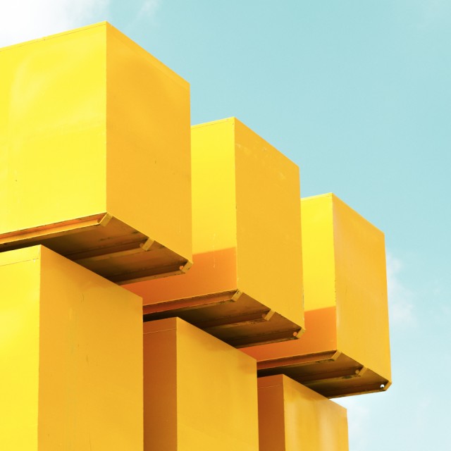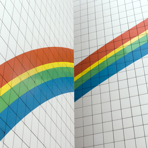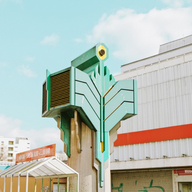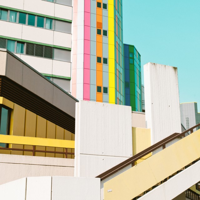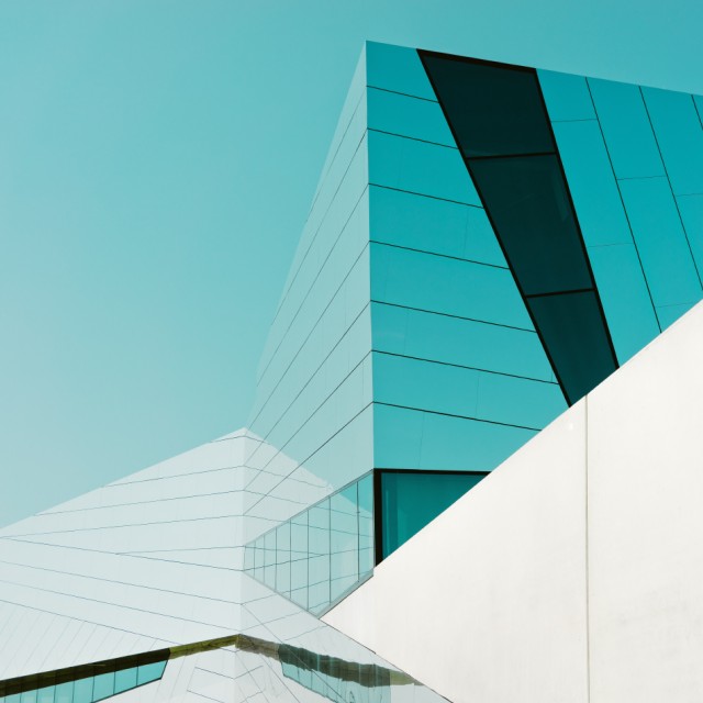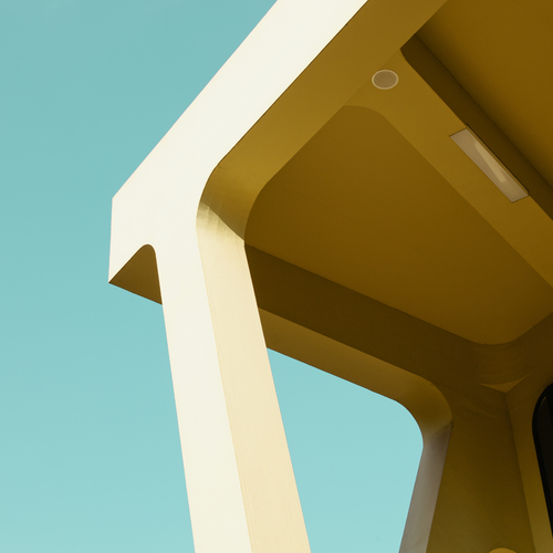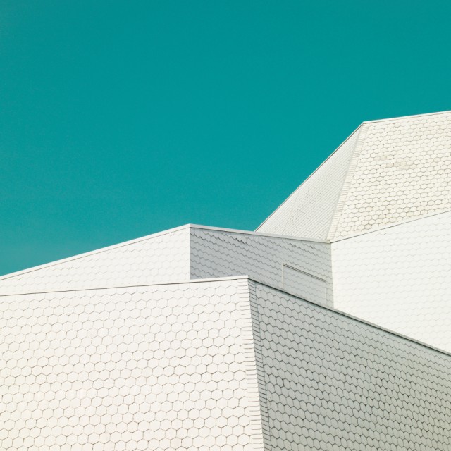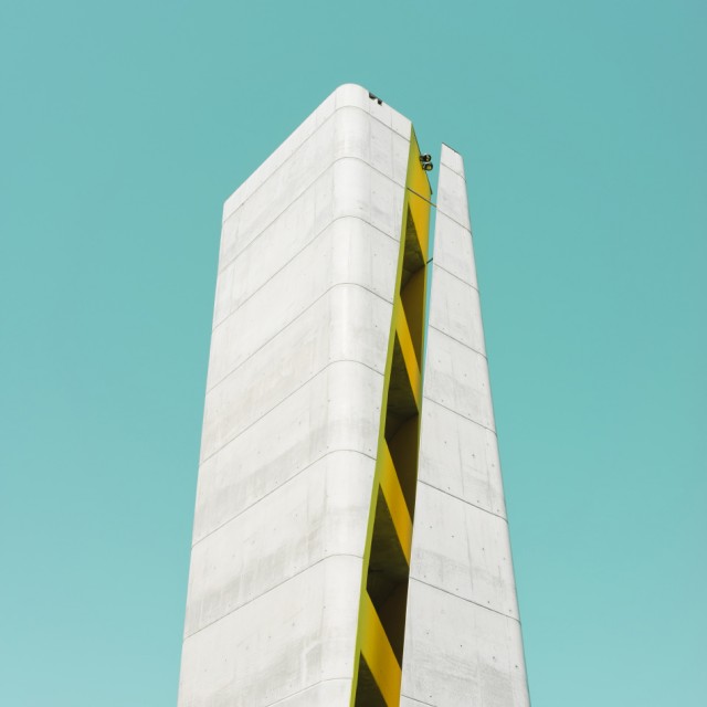 Como siempre, una serie colorida y con mucha geometría, sus característicos cielos turquesas súper saturados y una visión única de la arquitectura.