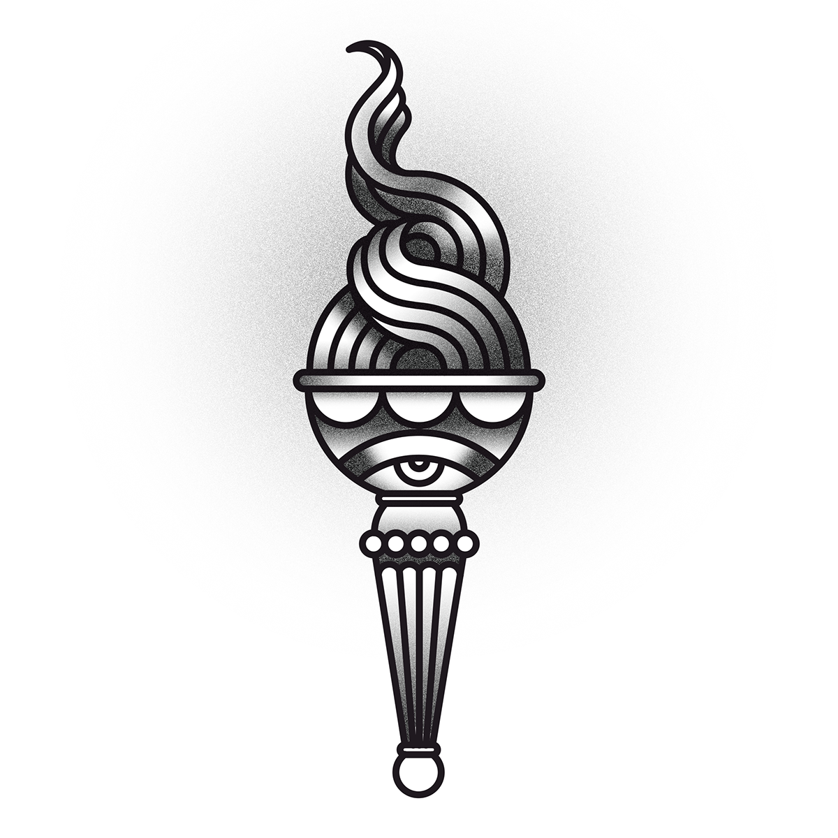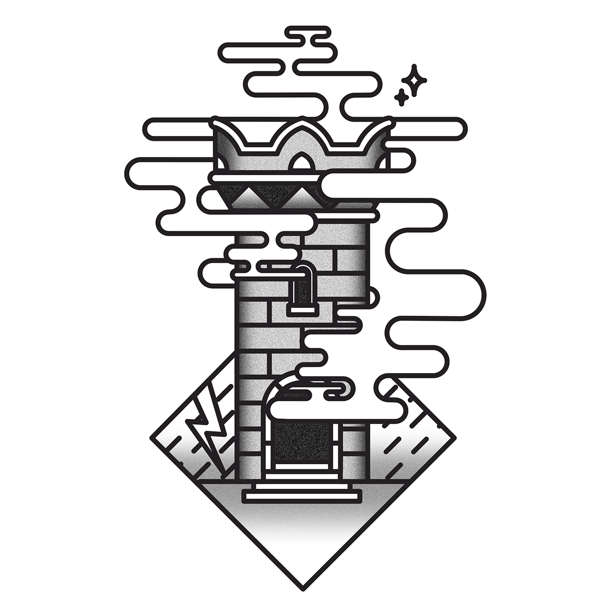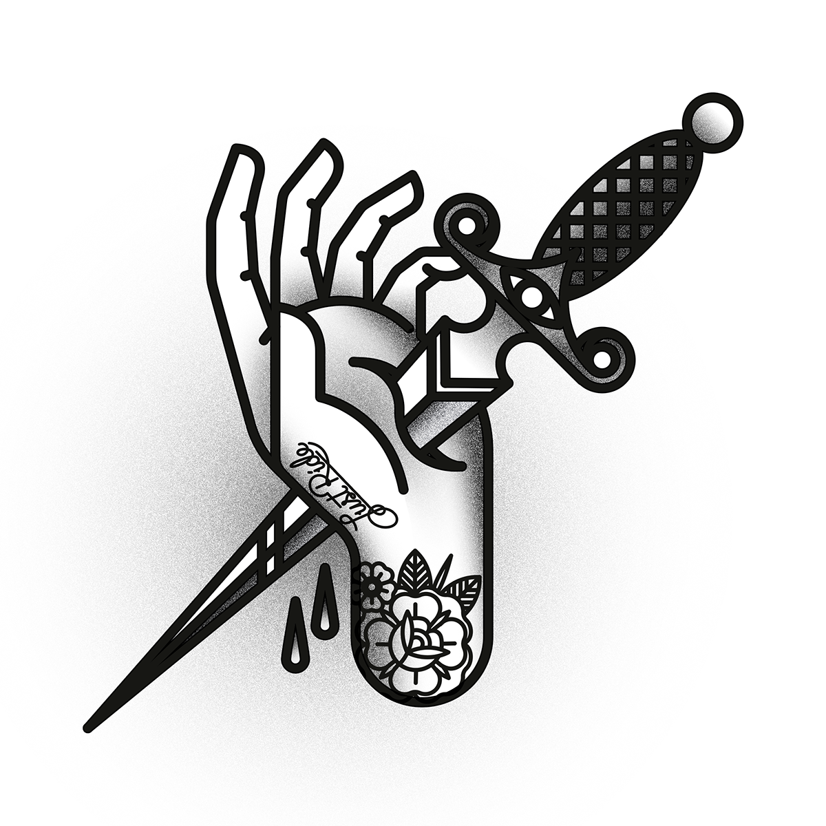 Su hobbies pasa por los tatuajes, pero con una estética mucho más gráfica a la que estamos acostumbrados. Piensen en geometrías mezcladas con influencias del tatuaje old school y un toque de arte vectorial, y algo así van a encontrar en sus trabajos.