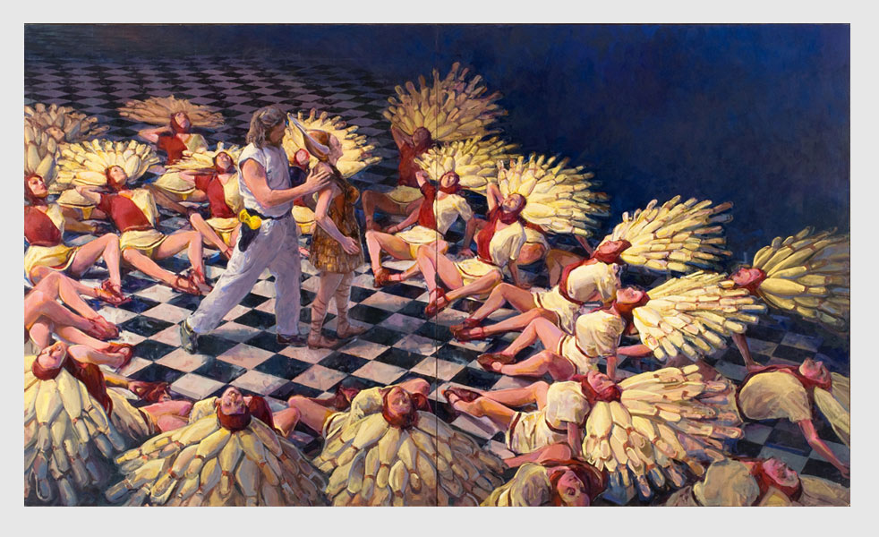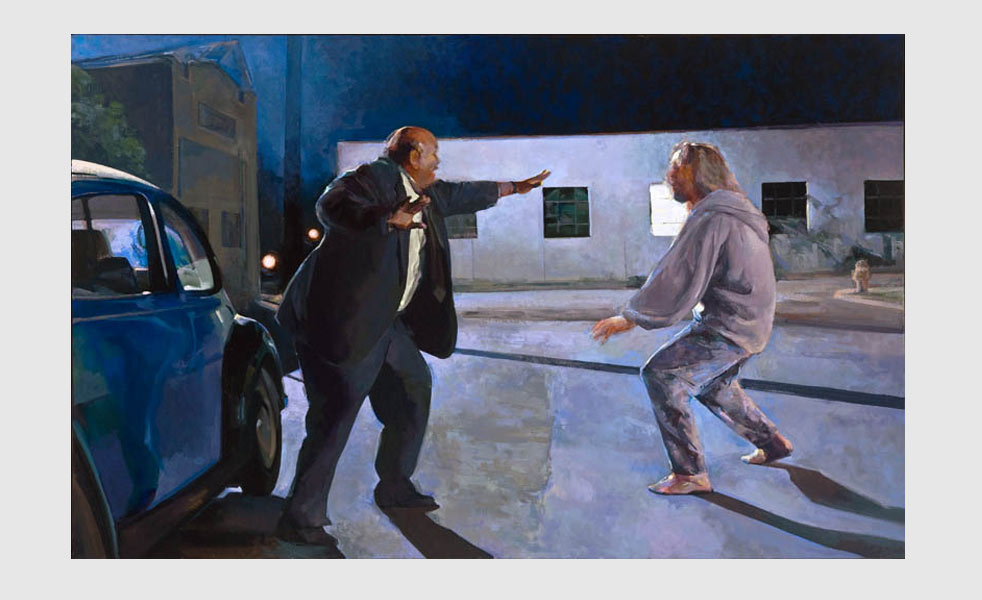 Pero su obra tiene una vuelta de tuerca, ya qué lo qué hizo Forkan es combinar el arte clasico de Caravaggio, Friedrich, Carracci, Velazquez, con la película de Joel y Ethan Coen… logrando estas piezas hermosas.