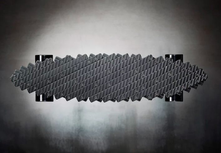 El diseñador taiwanés Chia-Wei Chen creó ‘the board’, un concepto de monopatín mini cruiser con una estructura dinámica única. El monopatín está hecho de 57 bisagras de pivote entrelazadas, transformando la clásica forma de crucero en un círculo perfecto. Al plegar las bisagras en una dirección u otra, la patineta se transforma en una forma circular, fácil de colocar en lugares más pequeños e incluso utilizada para la decoración.