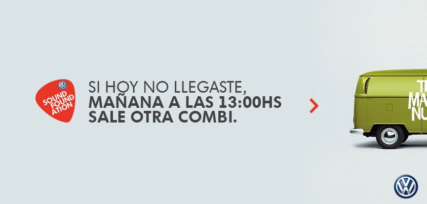 La Automotríz nos invita a subirnos a su mítica Combi en su Fan Page de Facebook para ir al evento. Desde hoy, todos los días hábiles hasta del 29 de noviembre, a las 13:00hs, se abren las puertas de la Combi para que diez fans de Volkswagen Argentina se etiqueten en el posteo de la promo y ganen un par de entradas.
