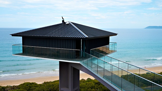 Alta en la panorámica Great Ocean Road en Victoria, Australia, encontramos The Pole House, la nueva casa creada por los arquitectos belgas F2 Architecture. Como un mirador en acero y chapa acanalada negra, en sus dos aristas que miran al océano se abren grandes balcones para admirar la increíble vista.