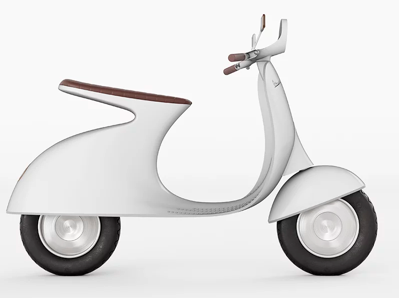 Siguiendo la silueta del scooter más famoso del mundo, Giulio Iacchetti desarrolló un modelo que enlaza con la tradición, pero al mismo tiempo presenta un cuerpo delgado y ecológico, para una mayor agilidad en el tráfico de la ciudad. a diferencia de las últimas generaciones, que se han vuelto ‘más pesadas’ a través de los años, todo lo que se considera superfluo ha sido eliminado en el diseño de la vespampère.