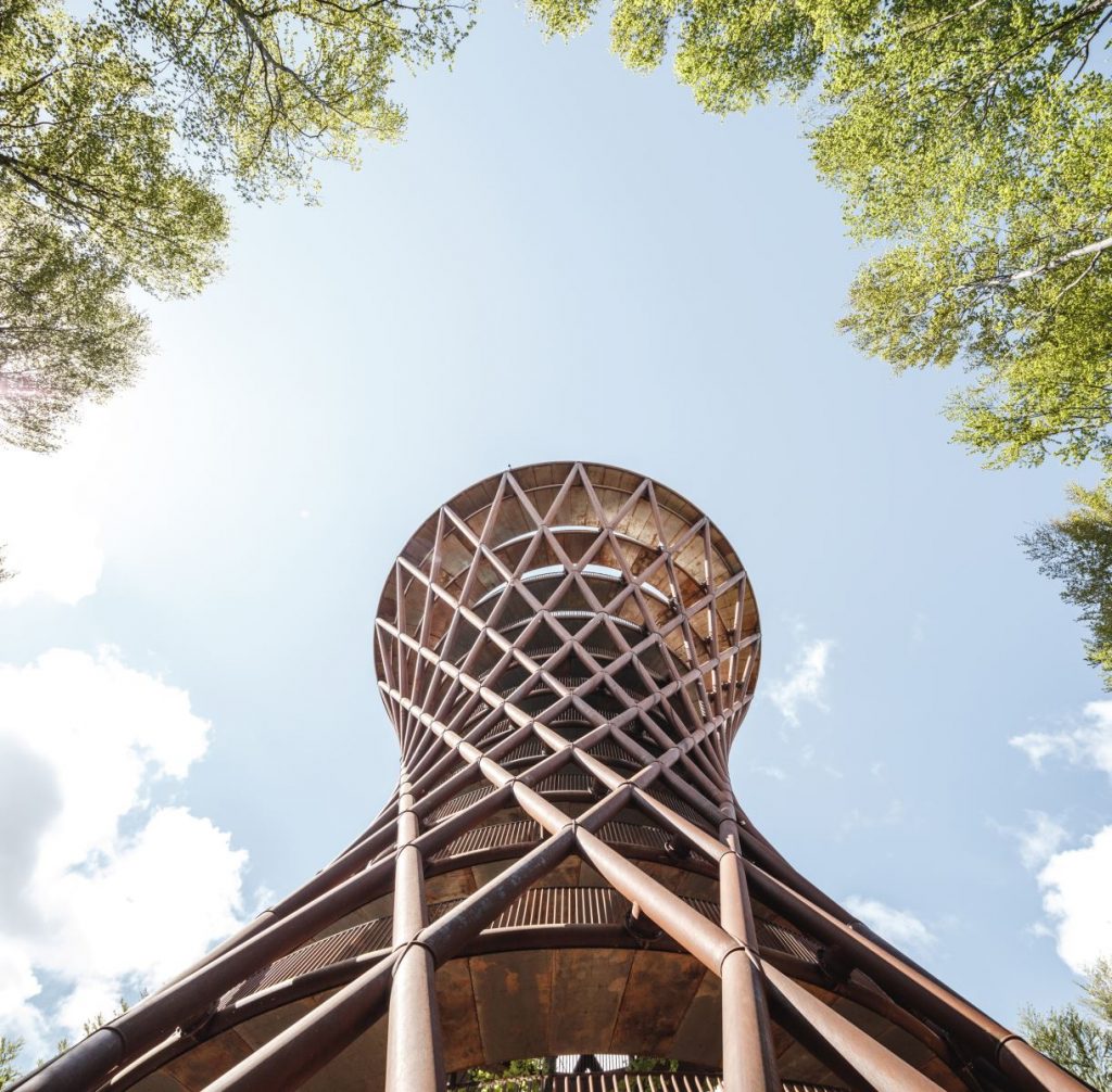La Torre Camp Adventure de EFFEKT en Haslev, Dinamarca, ofrece una experiencia única que no ofrece otro lugar de Escandinavia. La plataforma superior de la Torre está a 140 metros sobre el nivel del mar y es el punto más alto accesible de todo el país. Hacia el norte se ve Copenhague y Malmö, y hacia el sur y al este se ve el paisaje montañoso de Selandia.