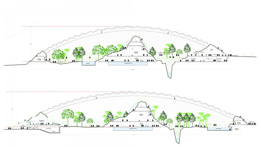 El estudio francés Coldefy & Associés ha revelado las primeras imágenes de lo que sería el invernadero tropical más grande del mundo. Se trata de ”Tropicalia”, un biodome que se instalaría a las afueras de Rang-du-Fliers, al norte de Francia, para crear un ecosistema tropical de 15.000 metros cuadrados cubiertos con una sola cúpula, con el fin de sumergir a los visitantes en un mundo exótico, proporcionando una temperatura constante de 28 ° C en una región con un clima notoriamente pobre.