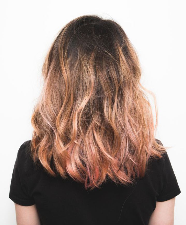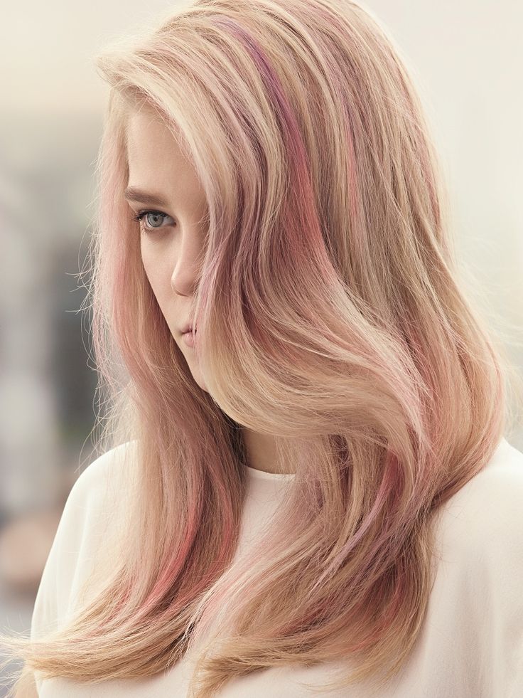 Para las menos arriesgadas, pero que no quieren dejar de probar esta tonalidad en su pelo, pueden empezar con pequeños toques de color rosa y dorado entremezclado a lo largo del pelo, haciéndose más suave hacia las puntas.