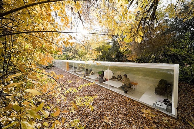 Un proyecto muy original de la mano de los arquitectos españoles Selgascano: construir una oficina en el medio del bosque cerca de Madrid. Casi como una carpa de acrílico, hormigón y madera, el contacto con el exterior está (casi) al alcance de los dedos.