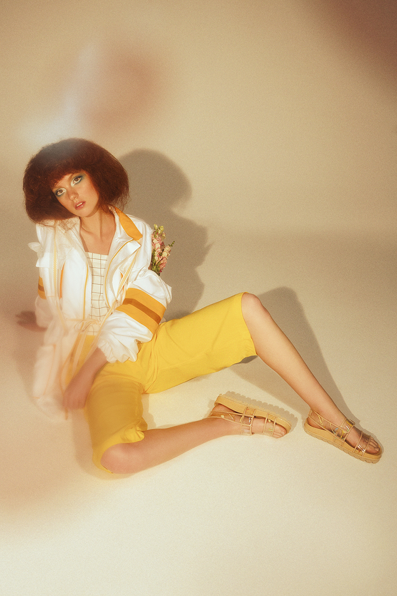 Esta temporada está inspirada en el vaporwave y en su estética. Se nota por las estampas que diseñé (siempre diseños las estampas), por algunas tipologías que elegí que denotan cierta nostalgia por prendas medias clásicas de los 90′. No es literal, para nada, cómo muestro el concepto. De hecho lo pulo hasta que salga sólo lo necesario.