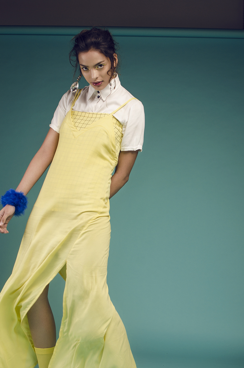 Entre líneas, cuadros y estampas inspiradas en el vaporwave, una estética que parece salida de una ventana de Paint instalado en Windows ’95, nos encontramos con las prendas de Iván Hernández. Un grito de color entre la monocromía, un toque de psicodelia y referencias a los ’90.
