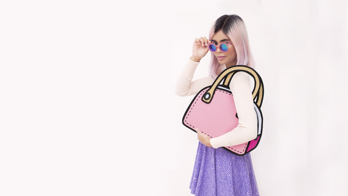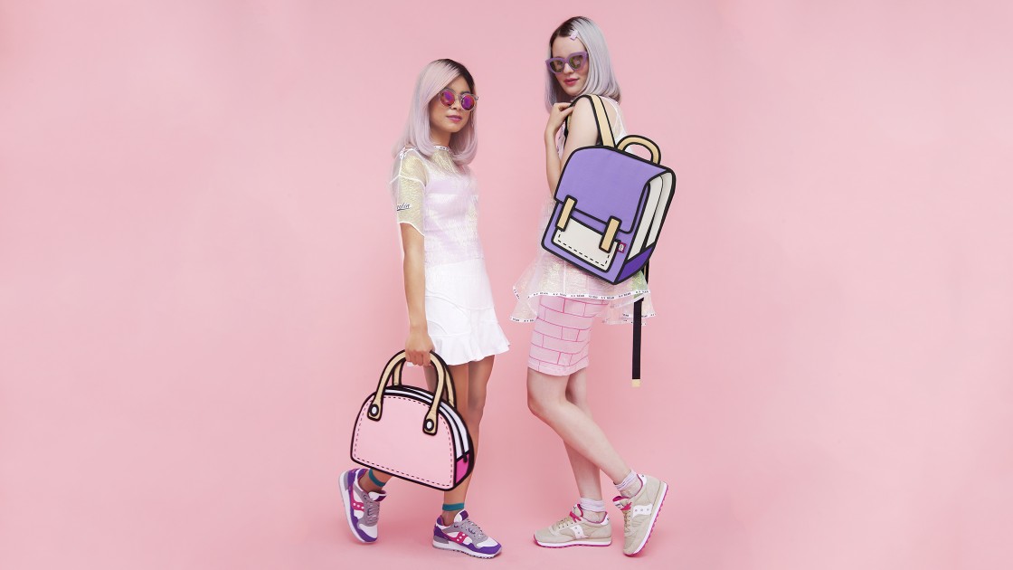 Jump from Paper es una marca de accesorios de Taiwán que diseña bolsos y carteras que parecen saltar de las páginas de un dibujito animado. En apariencia bidimensionales, trabajando en la fina línea de lo fantástico, es bastante difícil distinguir si son reales o si están dibujados sobre las modelos.