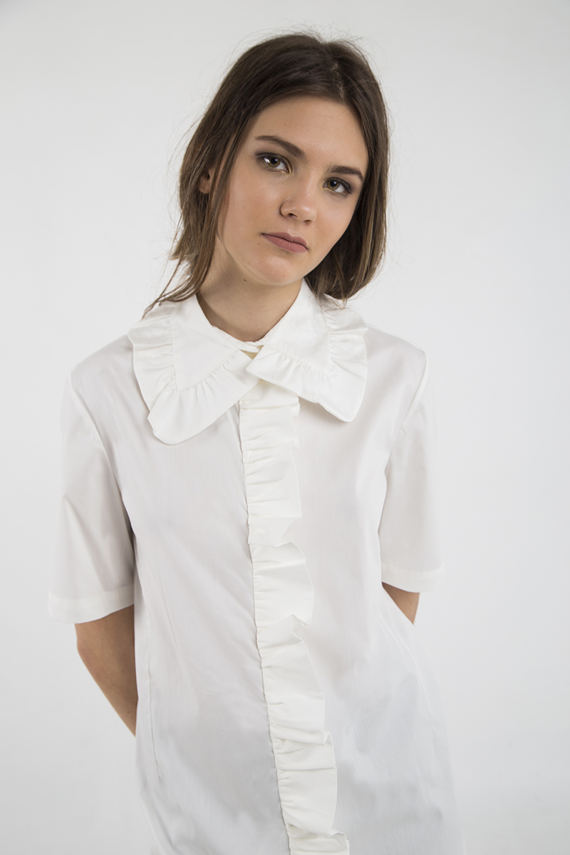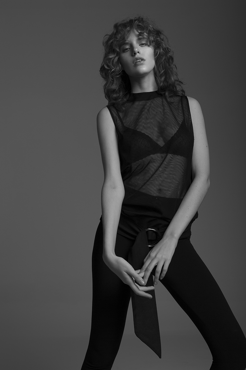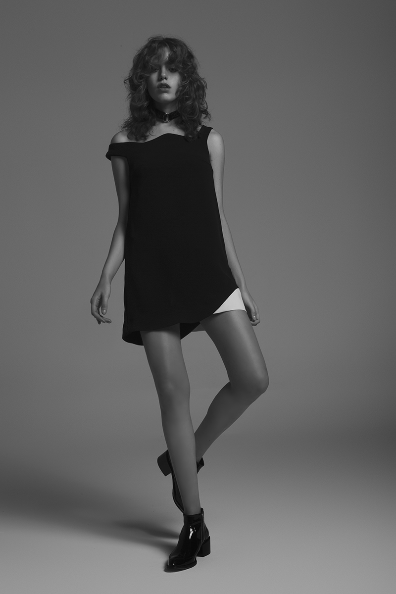 Sale de una mezcla de dos fuentes. La primera es la influencia de la película Alphaville de Jean Luc Godard. De ahí tomé la paleta de colores (blanco y negro) y algunas referencias en la vestimenta de los actores y Anna Karina. Por otro lado, para trabajar la silueta miré mucho la ropa oriental, los lazos con lo que encierran grandes piezas textiles, las asimetrías que esto genera y grandes volúmenes reducidos a pequeñas partes del cuerpo.